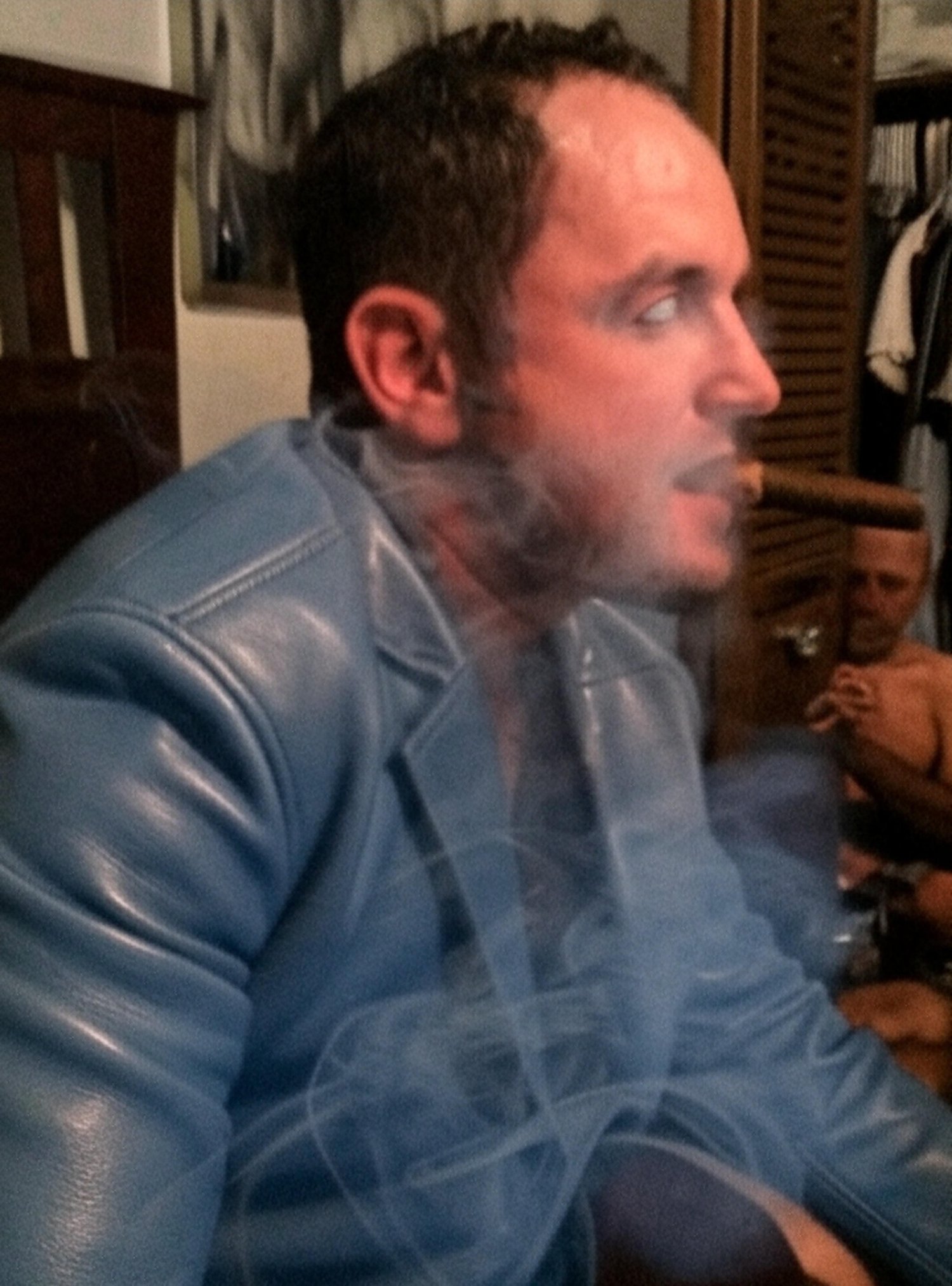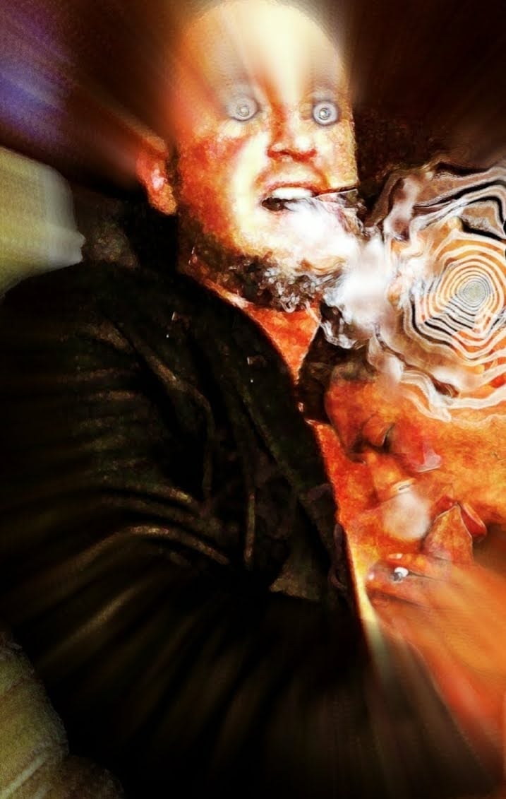 Leather blazer and fur wearing narcissistic hypnotist Master of cigar smoke expressed through digital art and ASMR