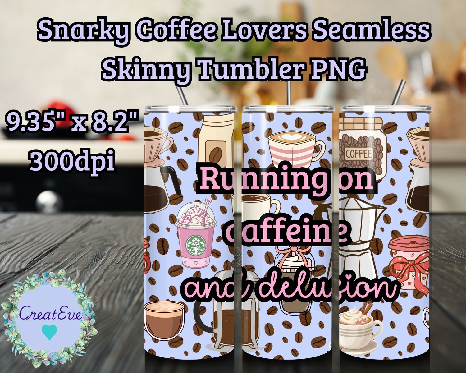 Snarky Coffee Lovers 20oz Seamless Skinny Tumbler, 9.35" x 8.2", 300dpi