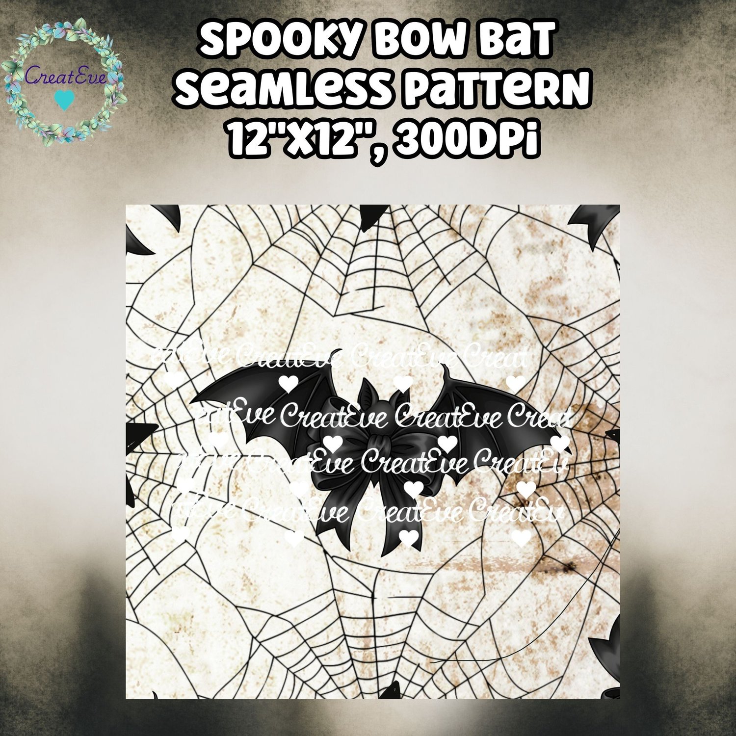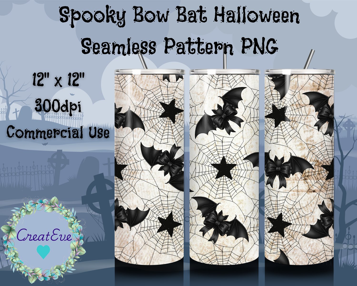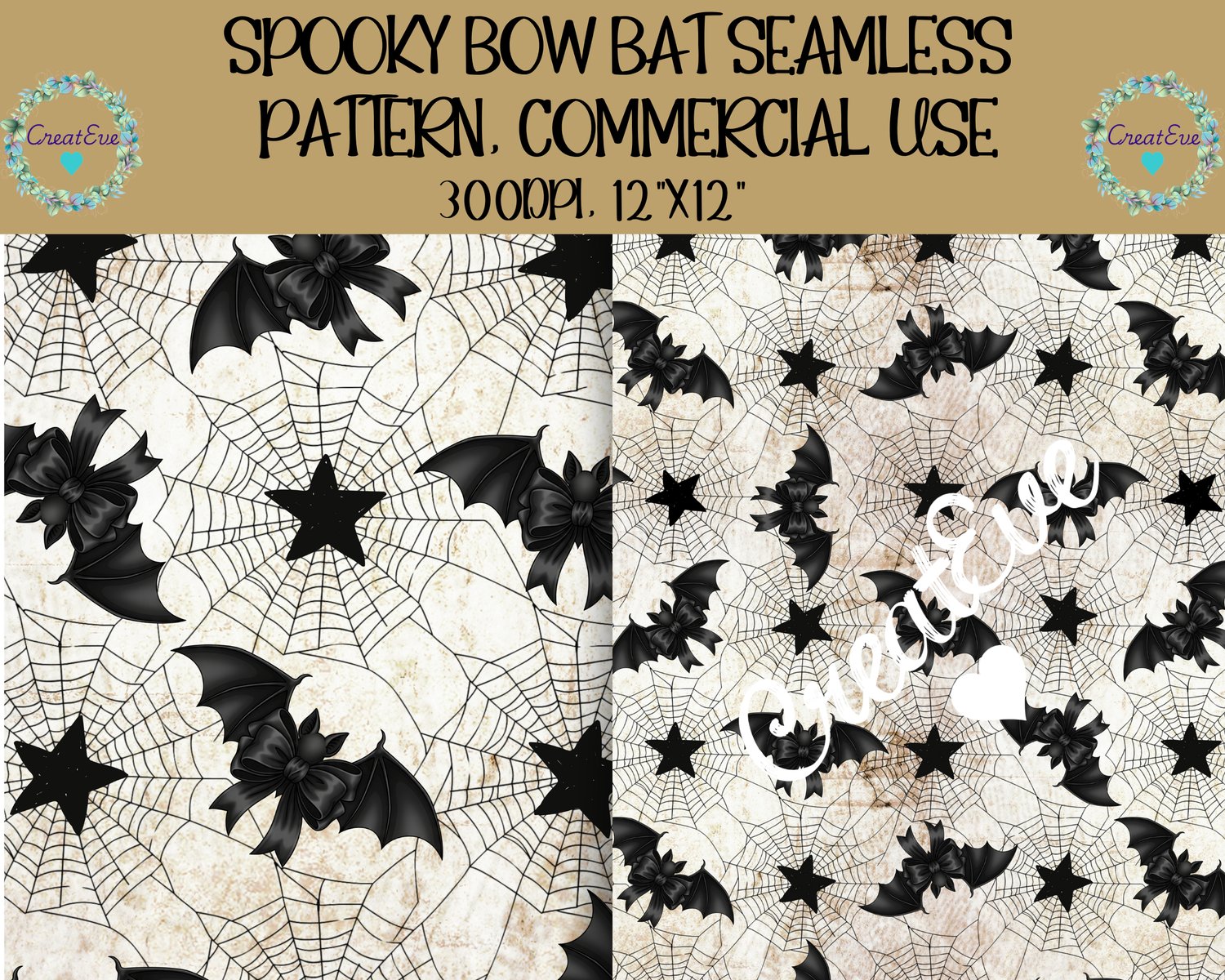 Spooky Preppy Bow Bat & Stars Seamless Pattern Commrecial Use PNG