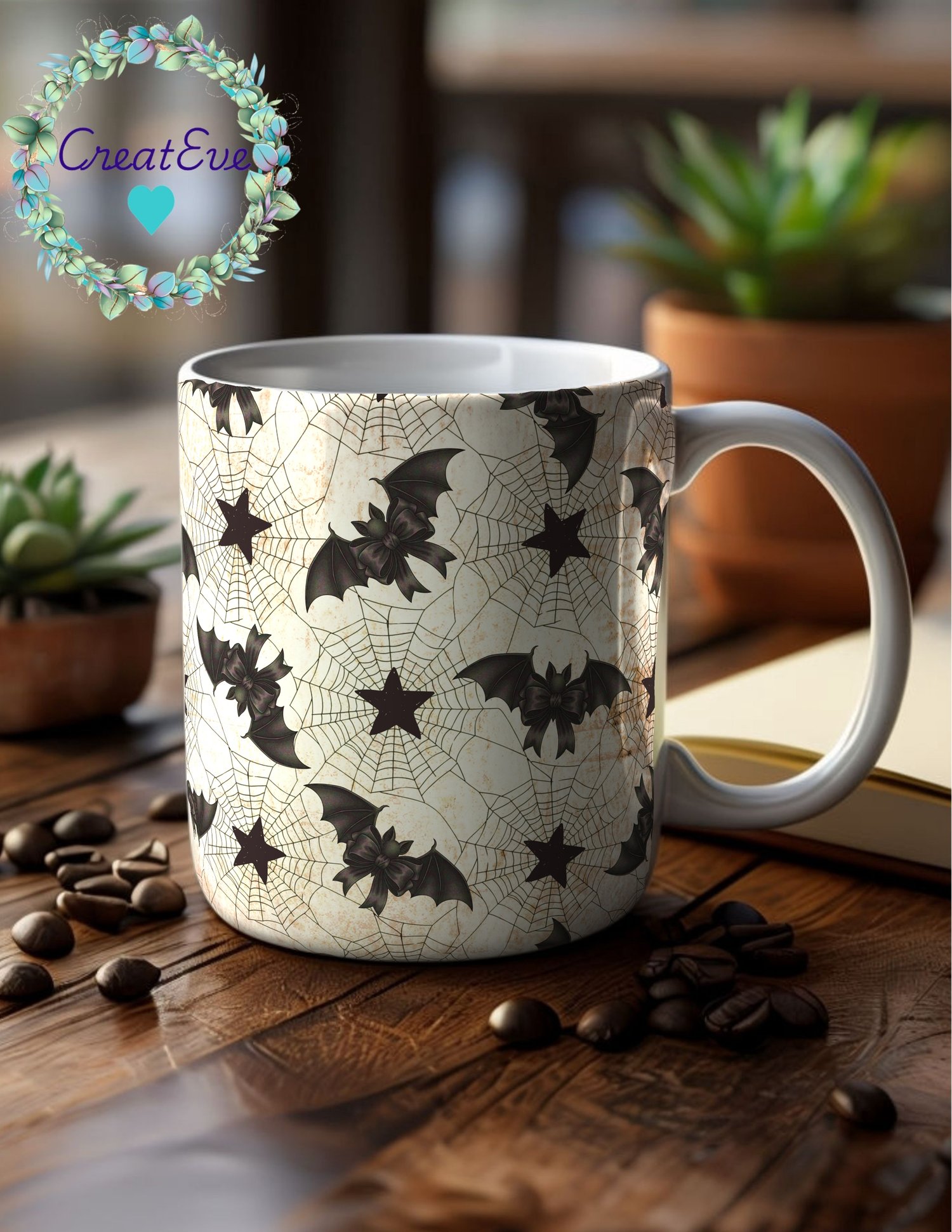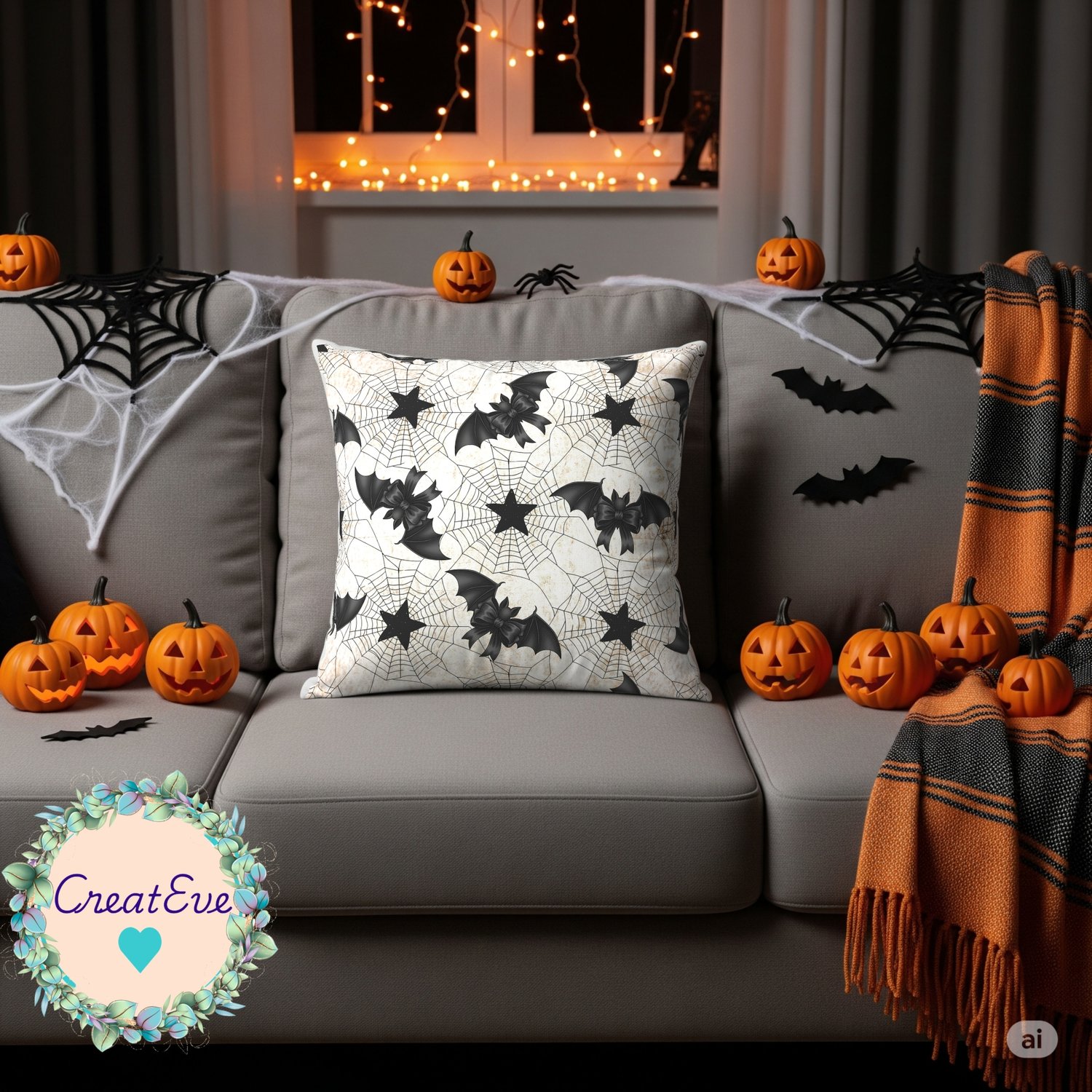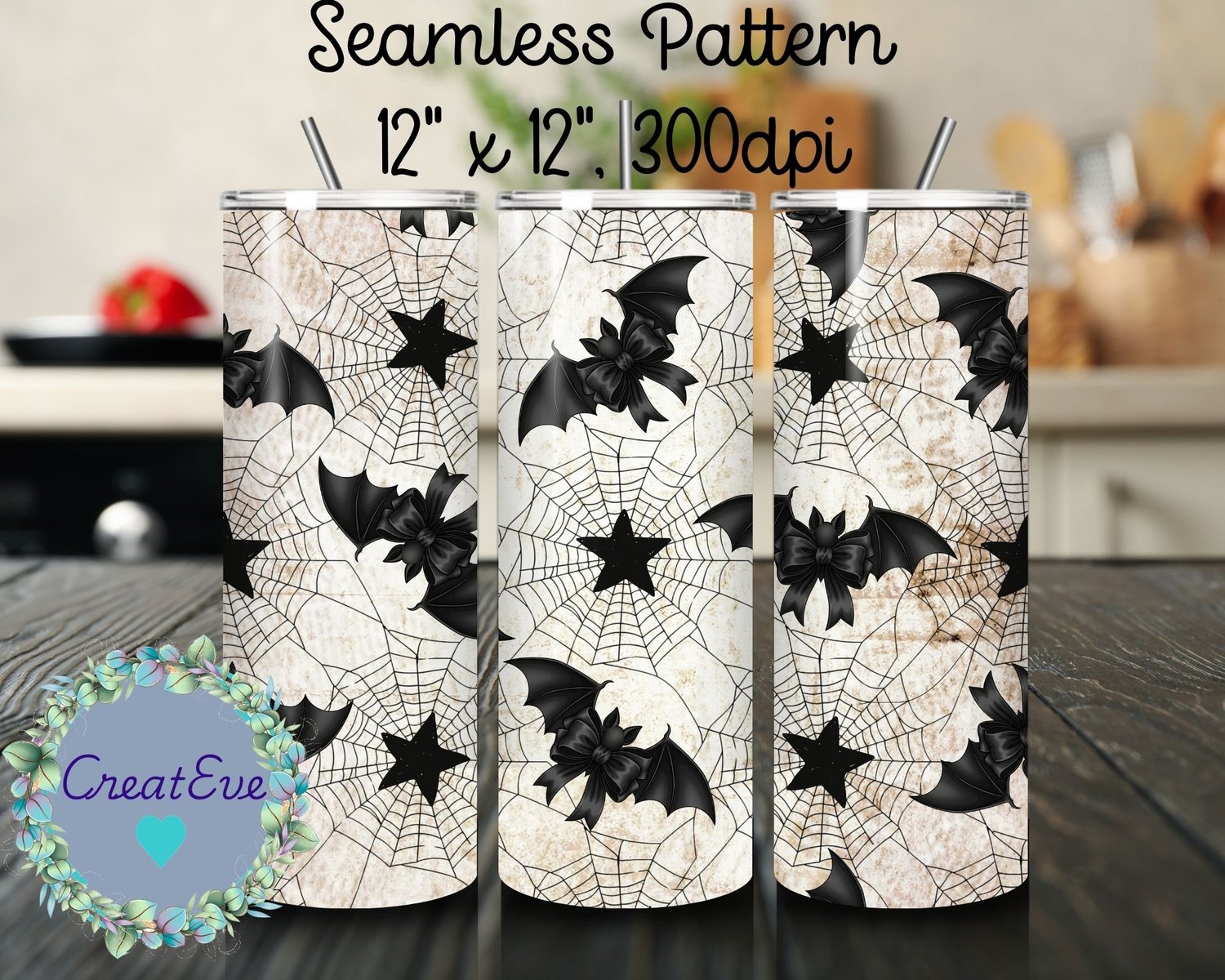 Spooky Preppy Bow Bat & Stars Seamless Pattern Commrecial Use PNG