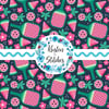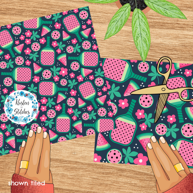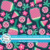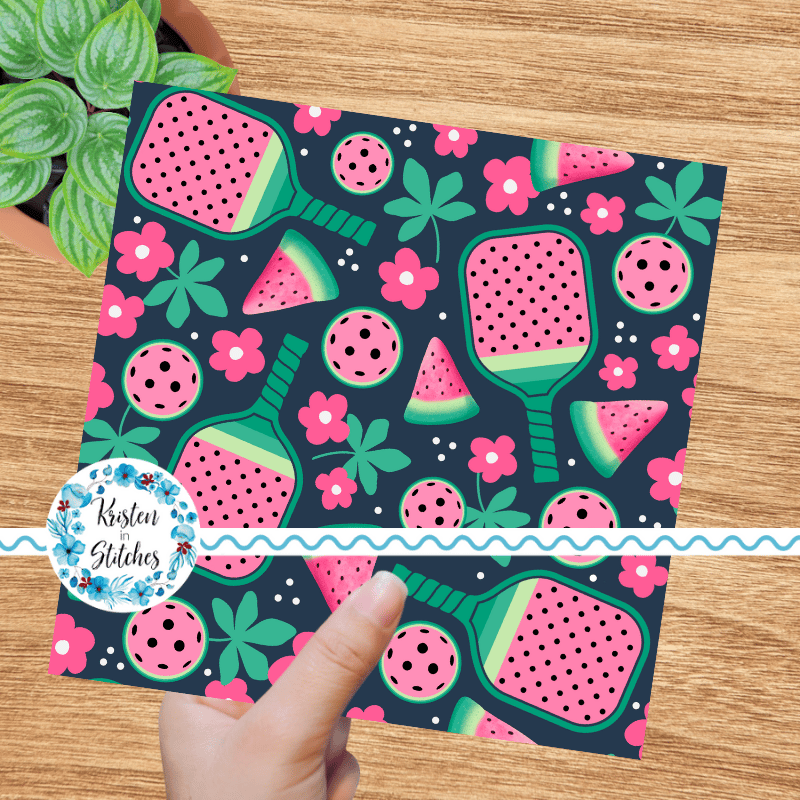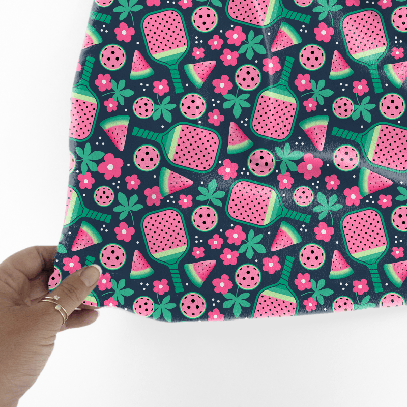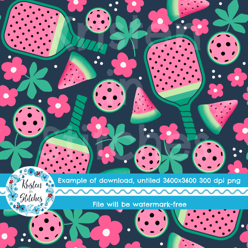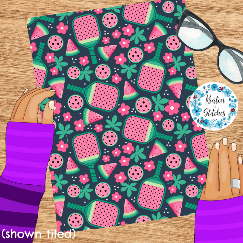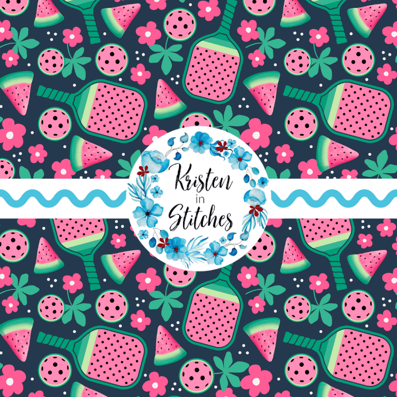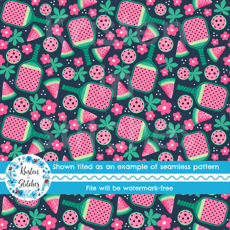 Pink Watermelon Pickleball Seamless Pattern, Paddles and Balls, Navy