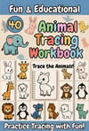 - 40 unique animal tracing pages (adorable cartoon-style animals like lion, elephant, giraffe, panda, dolphin, tiger, fox, bear, and many more!)
