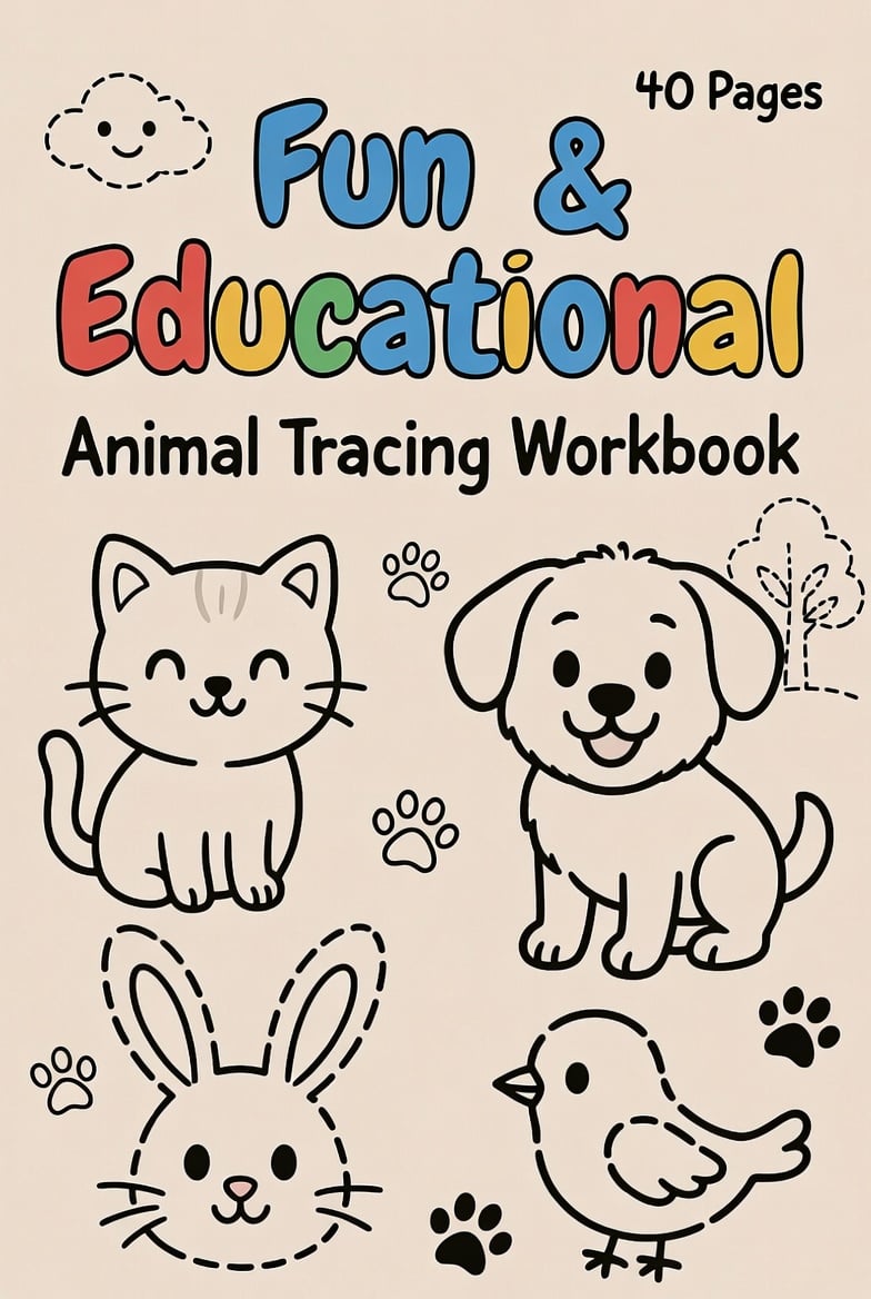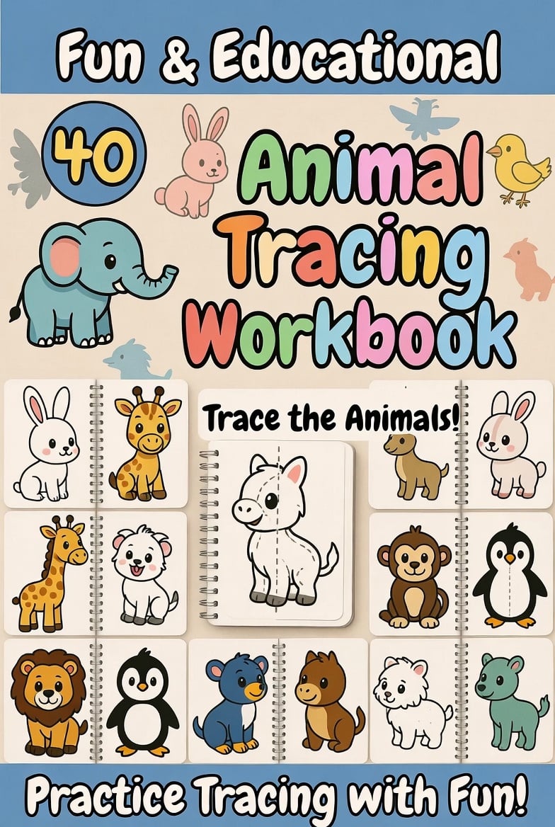 Fun & Educational Animal Tracing Workbook – 40 Pages of Adorable Animals!