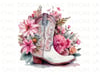 White & Pink Watercolor Coastal Cowgirl Boot with Flowers PNG Clipart Design, Sticker Designs, T-shirt Png Designs, Cowgirls