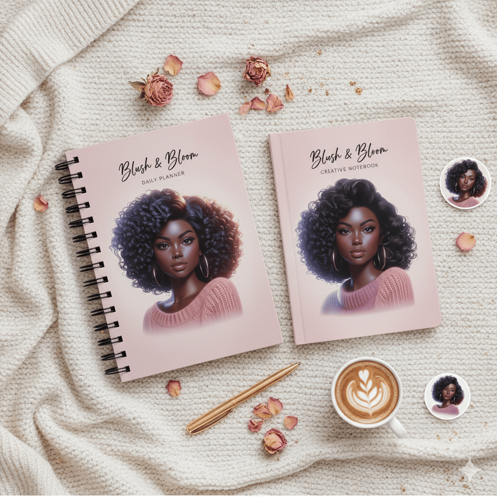 Elevate your creative projects with this stunning collection of premium 3D rendered portrait illustrations featuring beautiful Black women with voluminous curly hairstyles. Perfect for digital planners, journals, posters, Pinterest pins, stickers, and commercial branding.