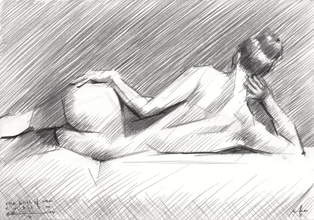 Graphite pencil drawing (Pentel 0.5 mm, 3B) on Winsor & Newton paper (14.8 x 21 x 0.1 cm – A5 format)