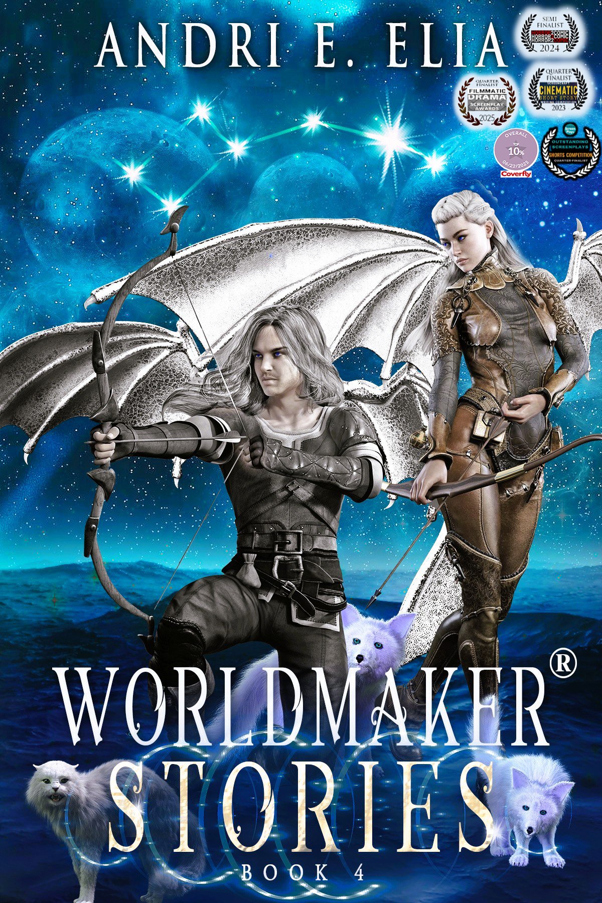 The commander of a Terran spaceship bound for Draco struggles with an unexpected deviation of the ship’s course—as an alien, winged ambassador on board his ship seeks her ancient enemy. On the ambassador’s homeworld of Yand, destiny draws her twin, Frost, to his planet’s Worldmaker. Or is it to her sword? The stories flesh out details of battles and romances in the on-going Worldmaker® saga, highlighting Hawk’s and Drace’s love stories. It also glimpses into the future, the people of Eltanin and the Pathfinder. And a humorous short, involving Alex, the shibal.