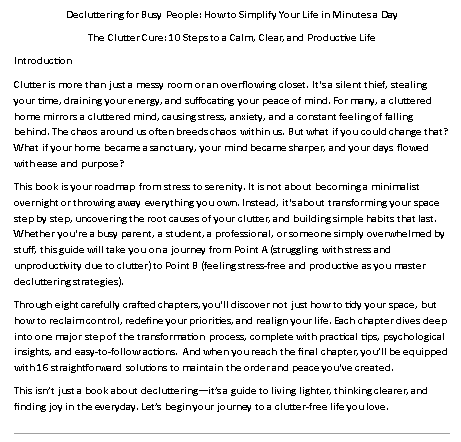 This book is your roadmap from stress to serenity. It is not about becoming a minimalist overnight or throwing away everything you own. Instead, it's about transforming your space step by step, uncovering the root causes of your clutter, and building simple habits that last. Whether you're a busy parent, a student, a professional, or someone simply overwhelmed by stuff, this guide will take you on a journey from Point A (struggling with stress and unproductivity due to clutter) to Point B (feeling stress-free and productive as you master decluttering strategies).
