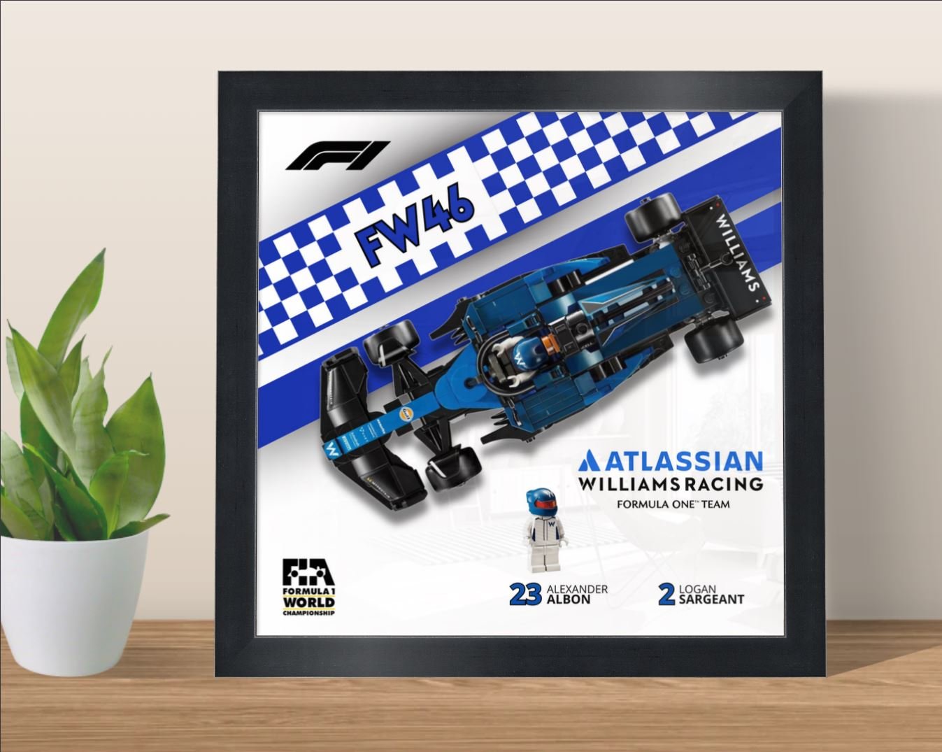 Digital poster compatible with LEGO Speed Champions Williams FW46, specially designed to showcase your Formula 1 model in a modern and premium display.