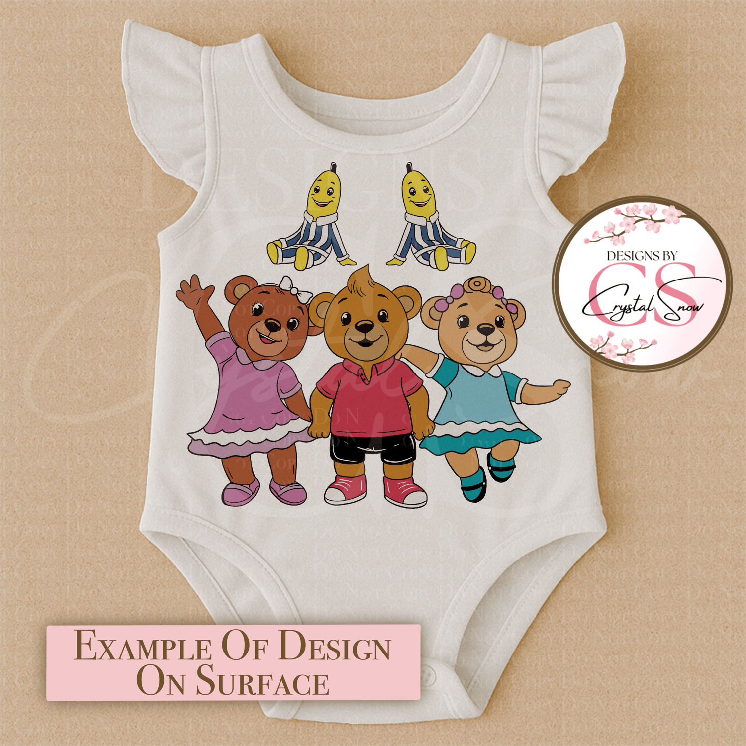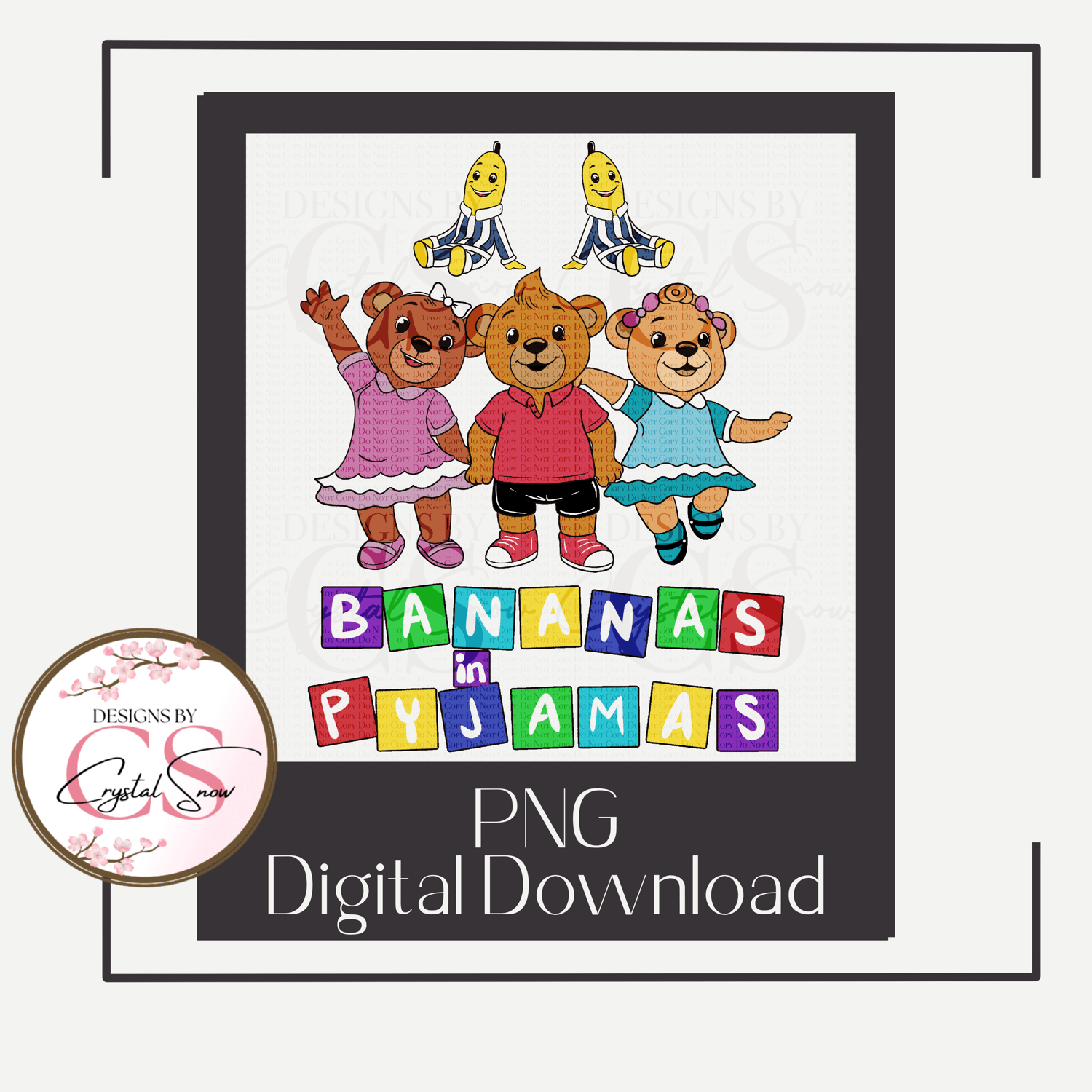 A high-resolution nostalgic inspired PNG featuring banana pjs and bear besties — ready for sublimation, DTF, stickers, and handmade projects.