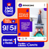 Plantilla Internet y Redes 1, diseño ideal para agencias, medios o servicios en internet. Edita textos, colores, imágenes y elementos fácilmente adaptando estos diseños a la temática de tu emprendimiento / negocio usando nuestras plantillas para Canva.