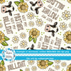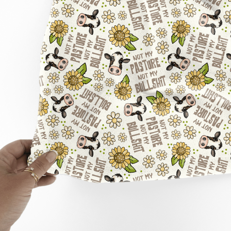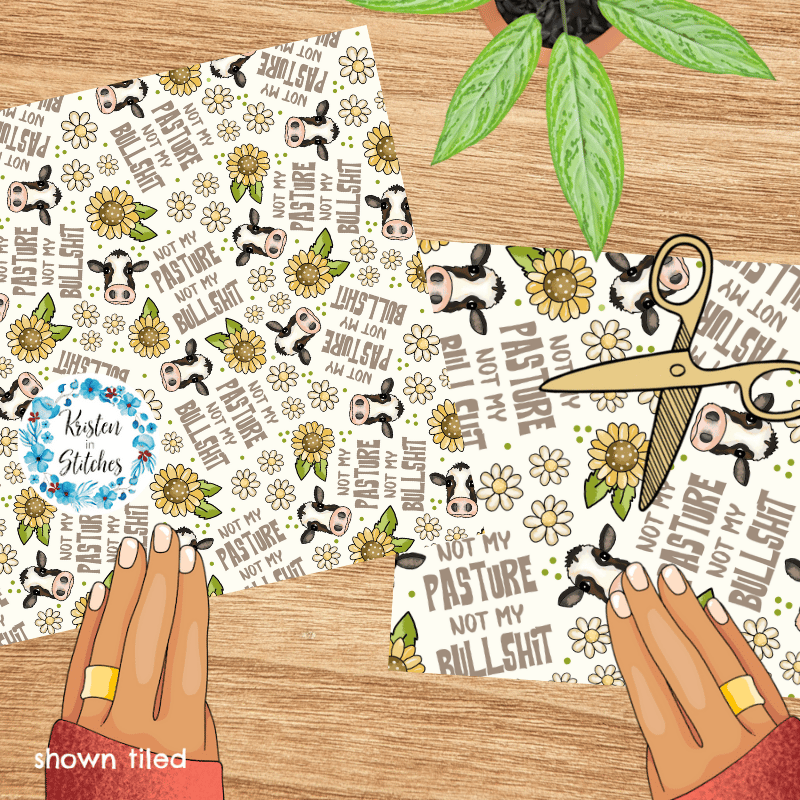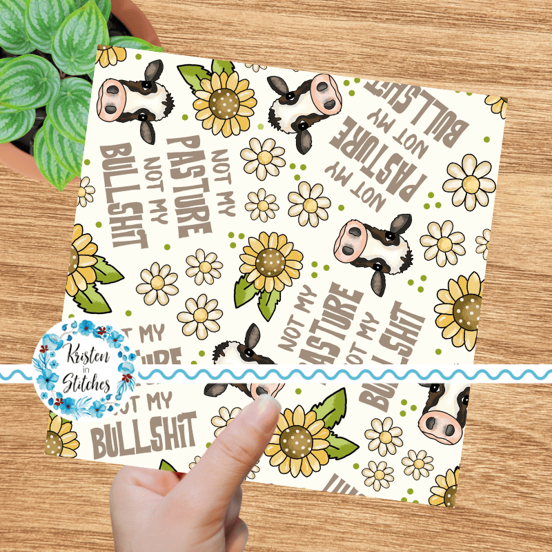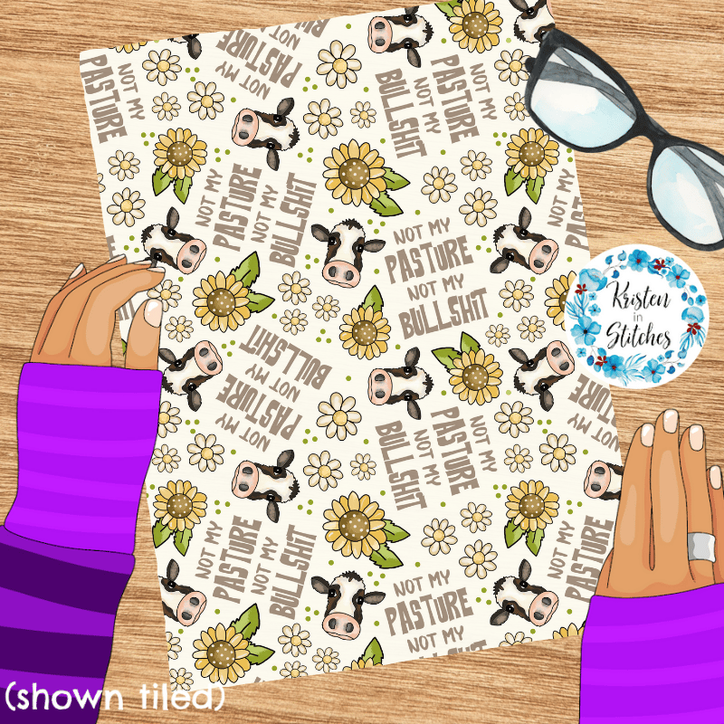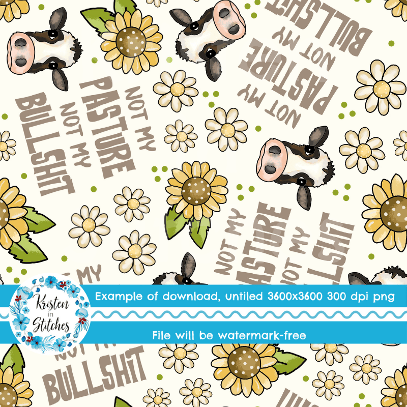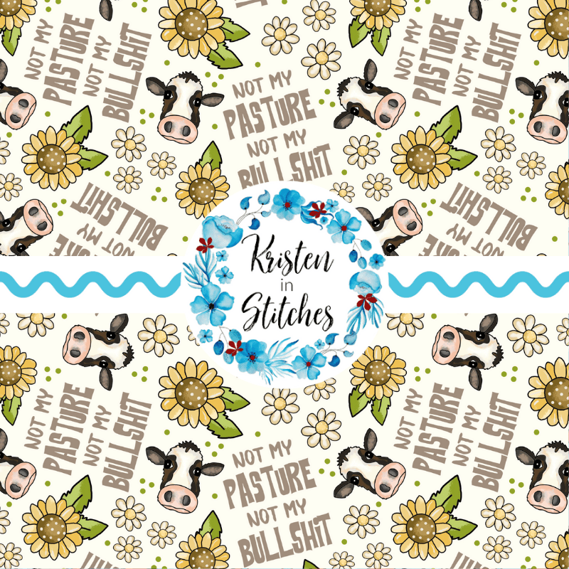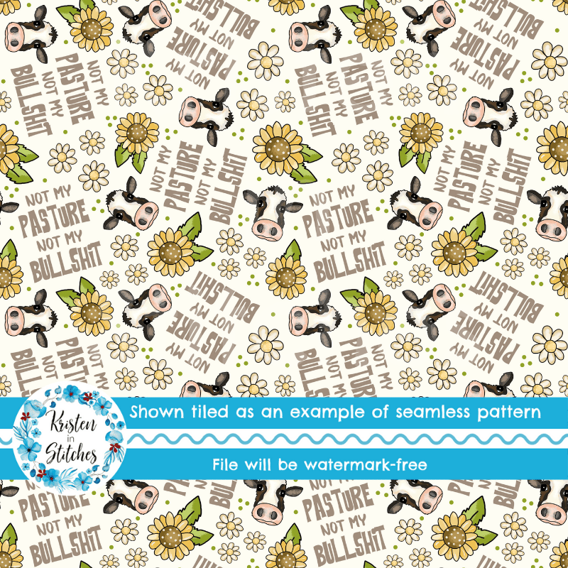 Not My Pasture Not My Bullshit Cows Daisy Flowers and Sunflowers Seamless Pattern, Ivory