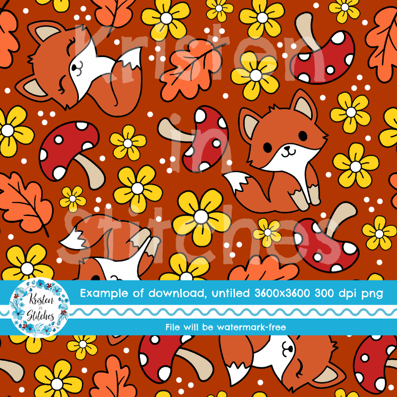 Sweet Orange Fox Friends Seamless Pattern, Daisy Flowers and Mushrooms