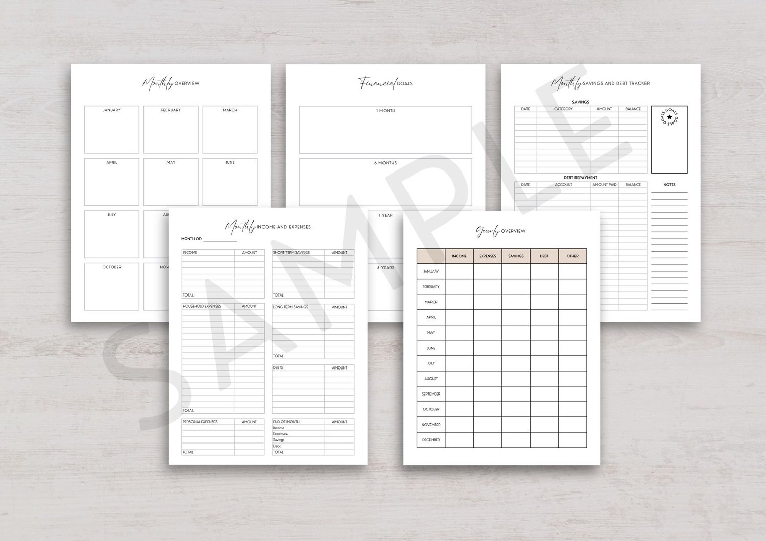 This easy-to-use Budget Planner is the best tool for anyone looking to get their finances under control. Easy to use layouts for tracking expense, income, goal progress and even meal planning. Use the budget planning page to plan your spending week by week. The debt and savings tracker is great for keeping on top of your payments.