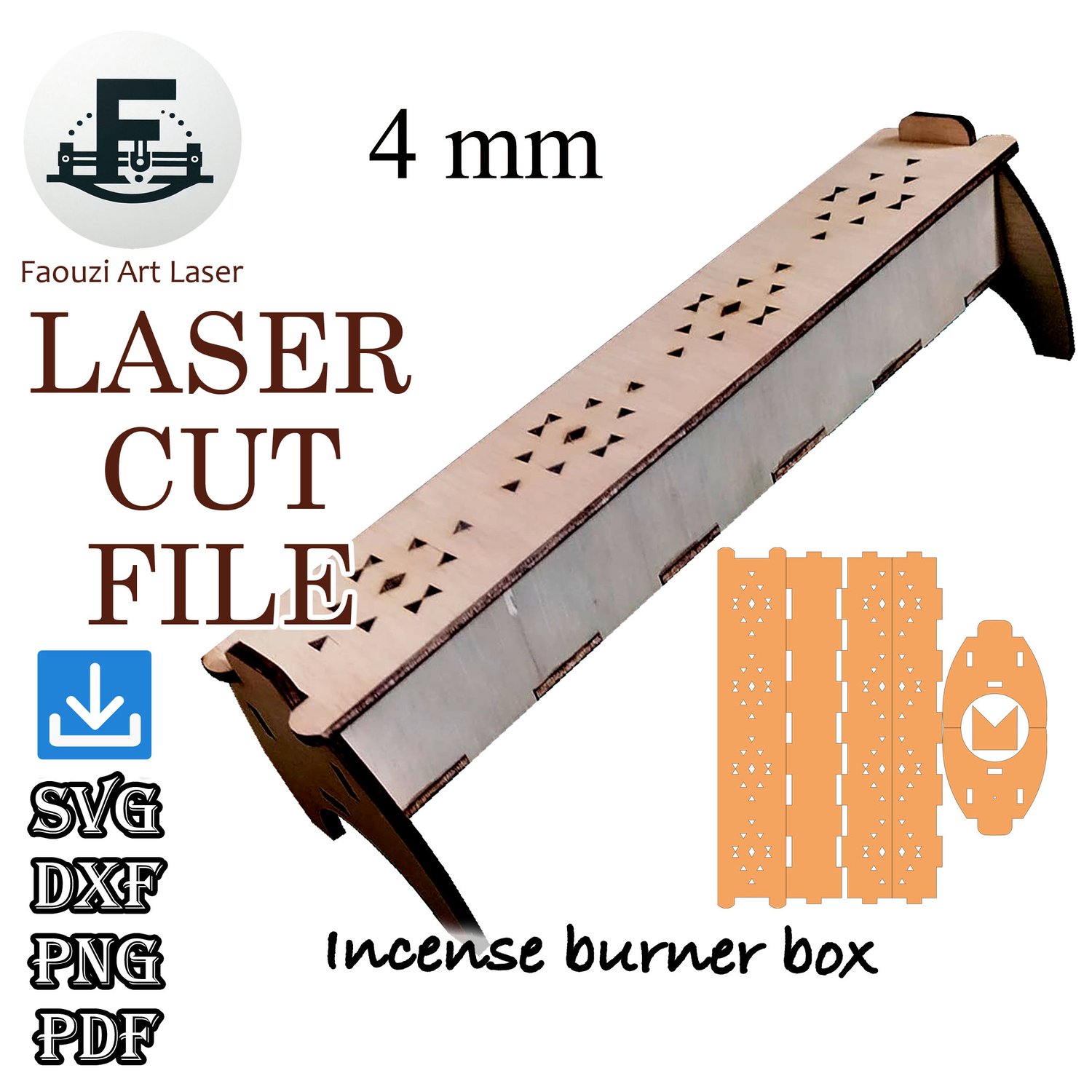 Incense holder box SVG Incense stick holder box svg Digital laser cut files Yoga dxf file GlowForge files Lightburn files Material - 4 mm