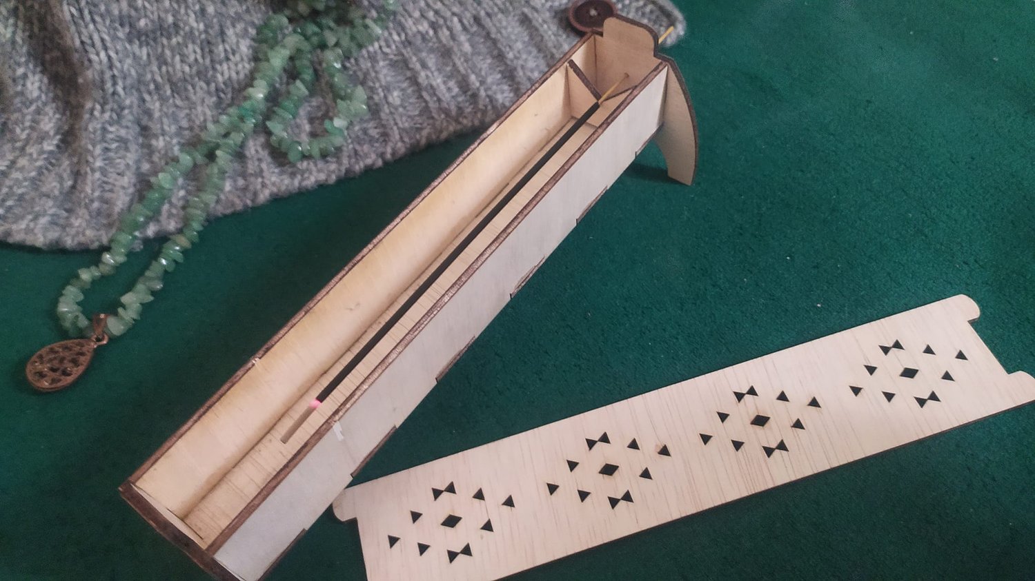 This listing contains laser-cutting files for a beautiful incense box with two drawers.