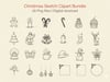 Christmas Sketch Clipart Set | 26 PNG & JPG Illustrations | Holiday Line Art