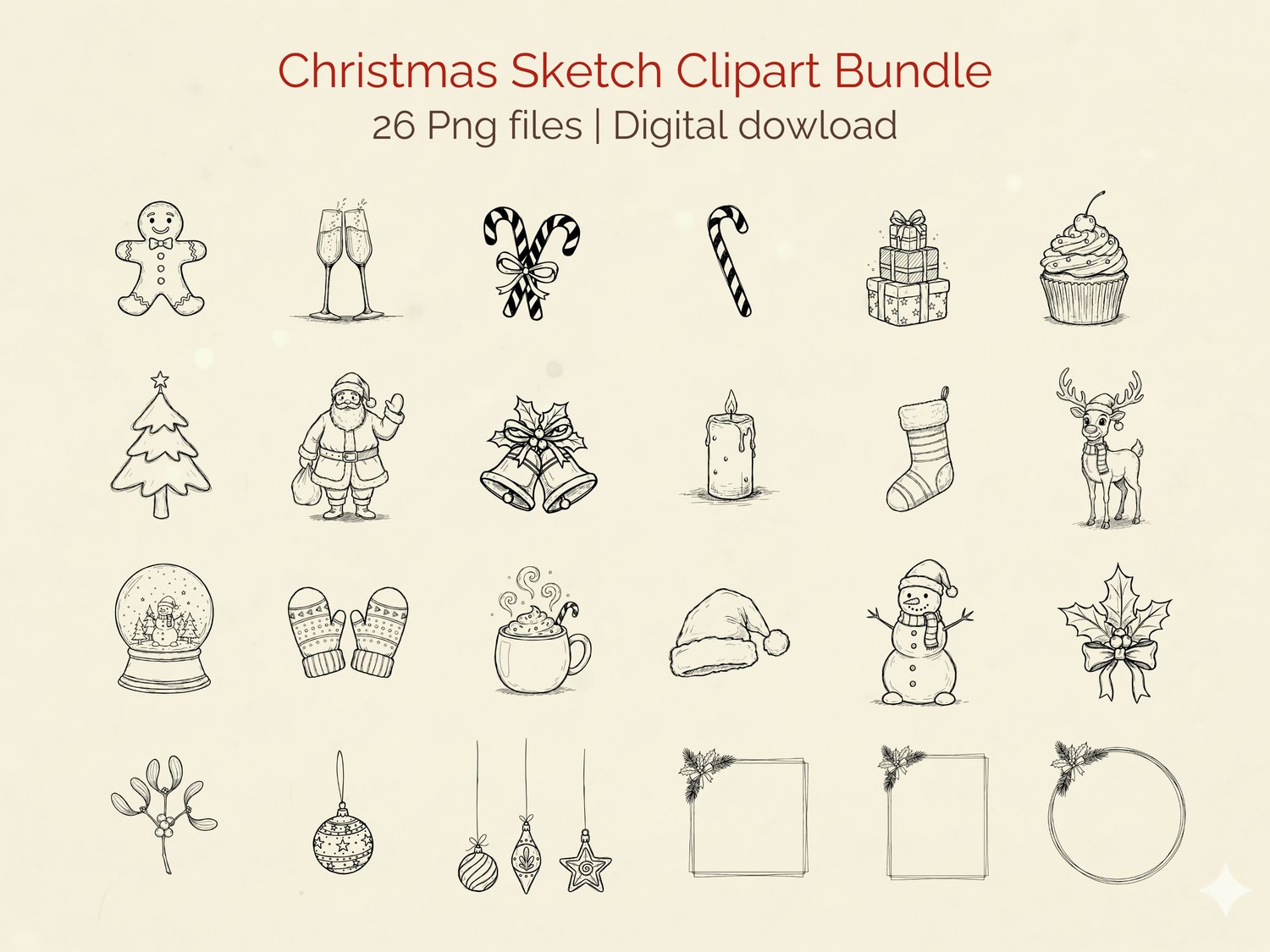 Bring the cozy charm of the holidays into your creative projects with this Christmas Sketch Clipart Collection!