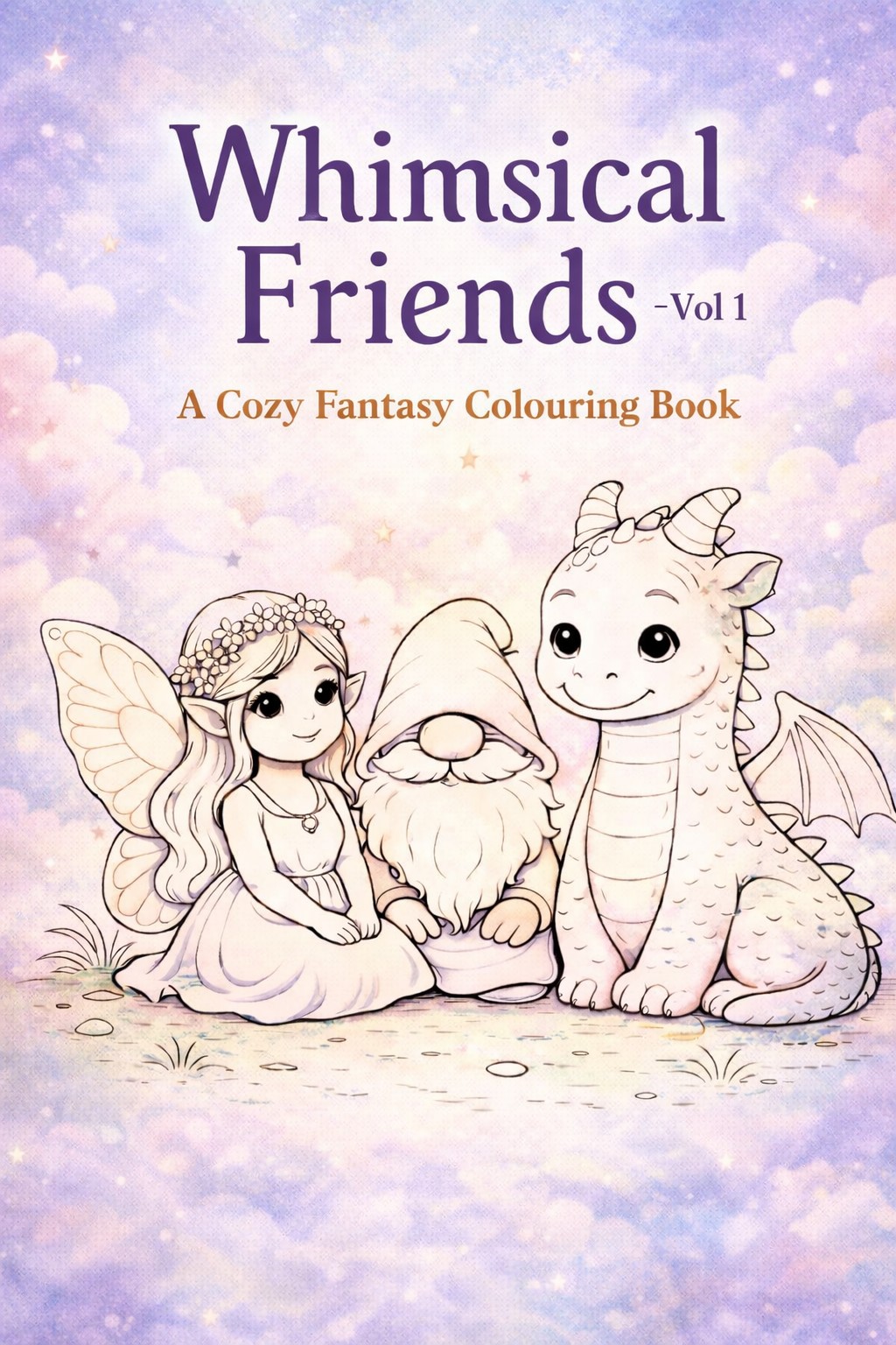 Whimsical Friends – Vol 1 is a cozy fantasy colouring book filled with gentle, joyful illustrations designed for calm, relaxing colouring.