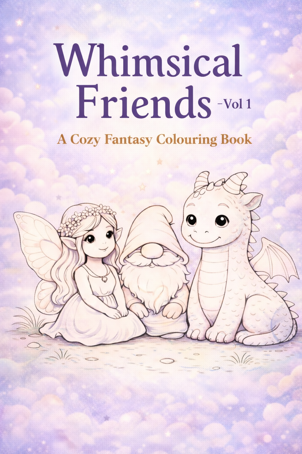 Whimsical Friends – Vol 1 is a cosy fantasy colouring book filled with gentle, joyful illustrations designed for calm, relaxing colouring.