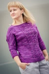 Three Braids is a seamless pullover knit from the top down with subtle dolman sleeves. The design uses an adaptation of the contiguous method of shaping set-in sleeves developed by Susie Myers.