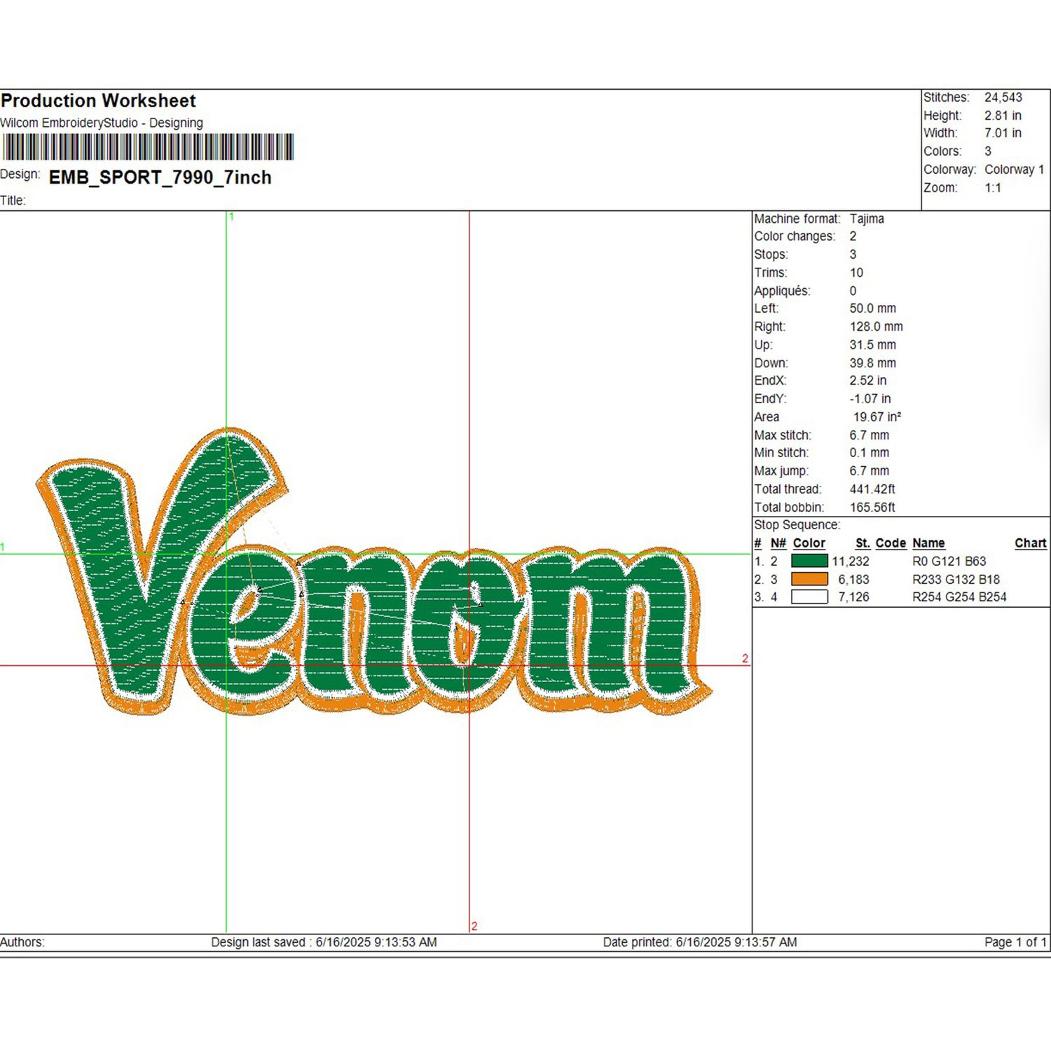 Venom College Football Team Writing Logo Embroidery Designs, NCAA Florida A&M Rattlers Machine Embroidery Files, NCAA Logo embroidery designs, NCAA Rattlers Logo, Digital Download