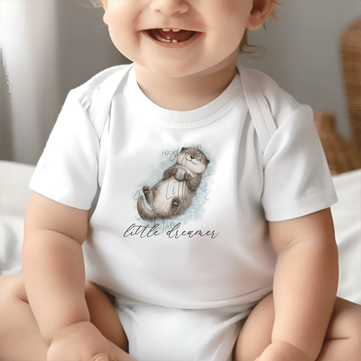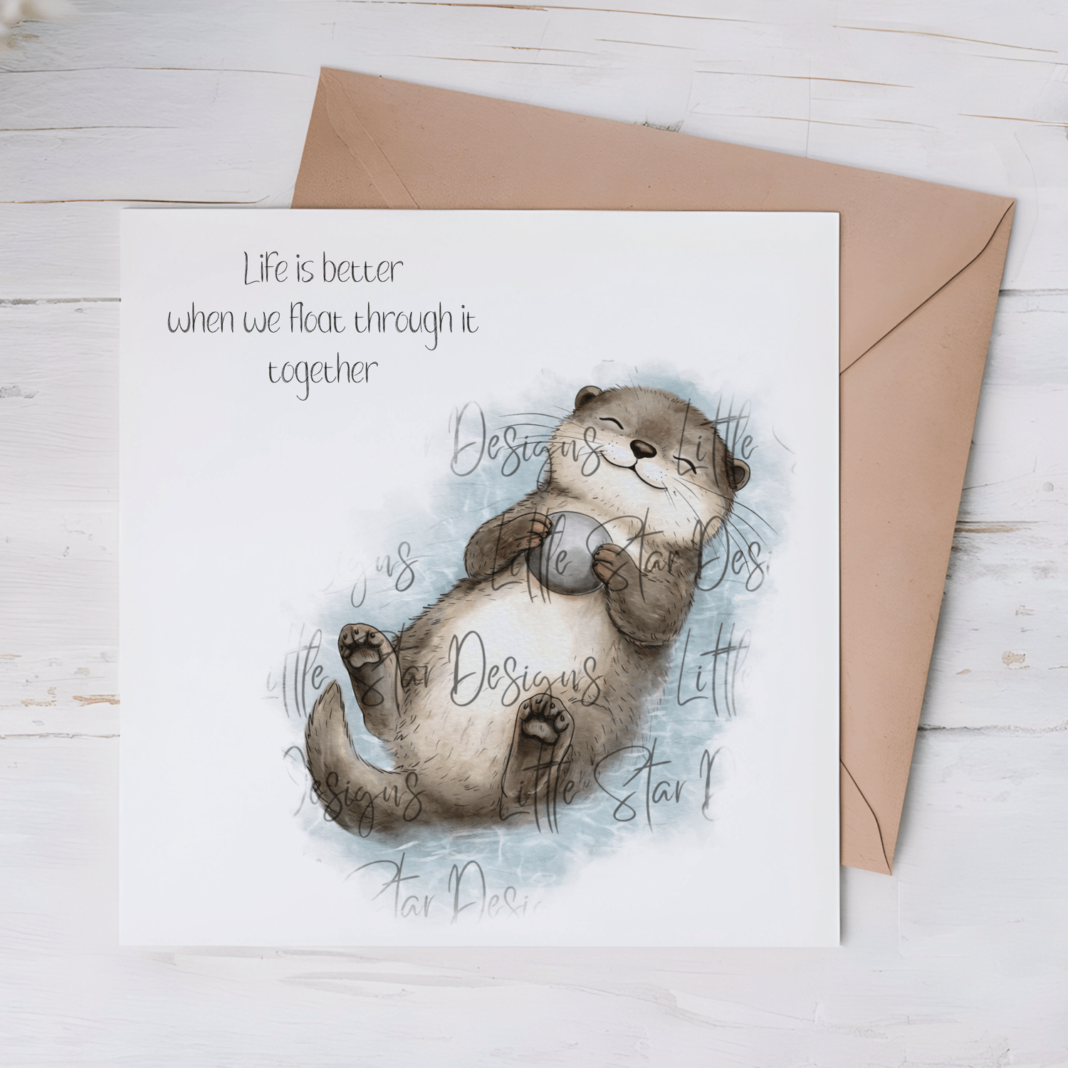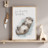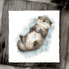 ⭐️ Sketchy Watercolour illustration featuring a little otter lying in water holding a pebble