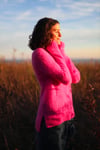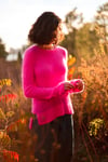 Picture this: a full length featherweight pullover framed by solid edgings, knit in one strand of luxurious alpaca fingering at a loose gauge, fitted through the shoulder and upper yoke, slightly oversized in the body with set-in sleeves, a split dipped hem, and optional bust darts. Sooo cozy and wearable!