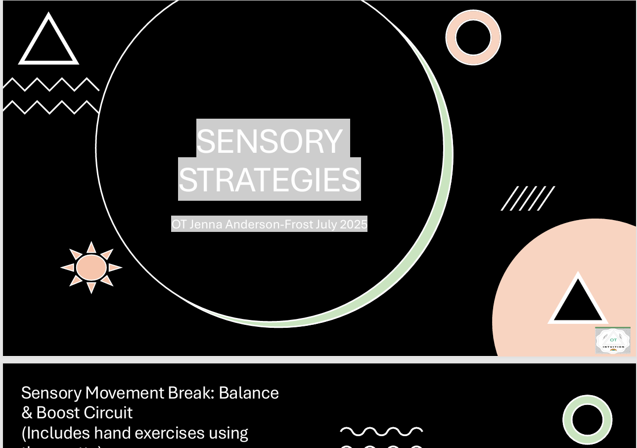 Mini Strategy Circuit - Supporting proprioception (awareness of body parts/ muscles), Tactile (touch) coupled with hand strengthening exercises using Theraputty (Credit to OT-TOOLBOX for the fun exercises) and strategies to support balance and core stability and strength.