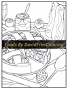 Foods Coloring Book is a coloring book for adults with 50 tasty images of donuts, cakes, and more to color creatively, both through the download of PNG and PDF files.