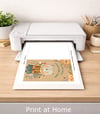 Print at home or through your favorite print shop using white cardstock for best results. Trim along the guide and fold to create a finished 5x7 card. Colors may vary slightly depending on your printer and paper choice.