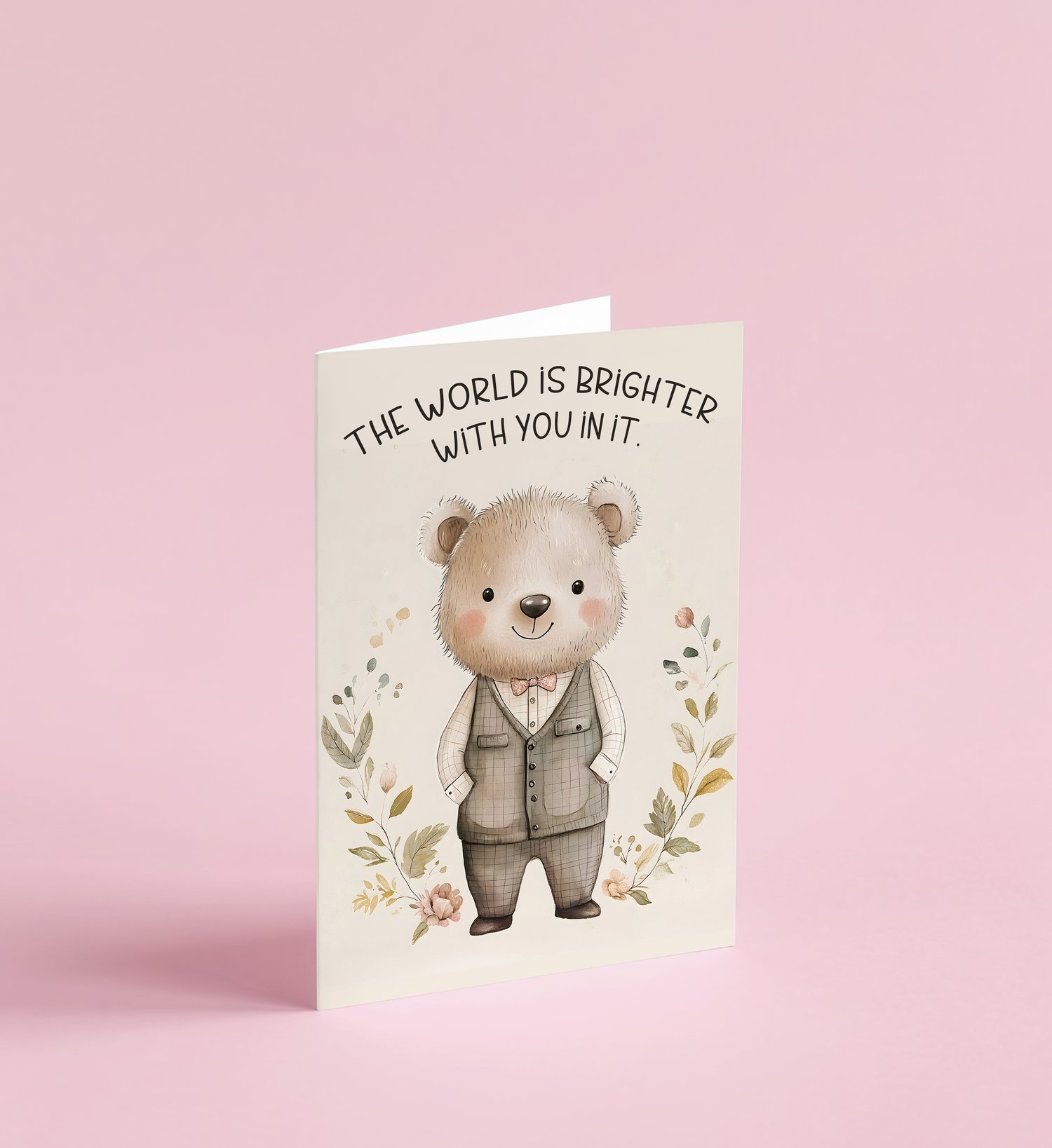 Featuring adorable illustrated bears and uplifting phrases like “The world is brighter with you in it” and “Be the reason someone smiles today,” each card is designed to bring comfort, positivity, and a little joy—whether you're encouraging a friend, supporting a loved one, or simply reaching out.
