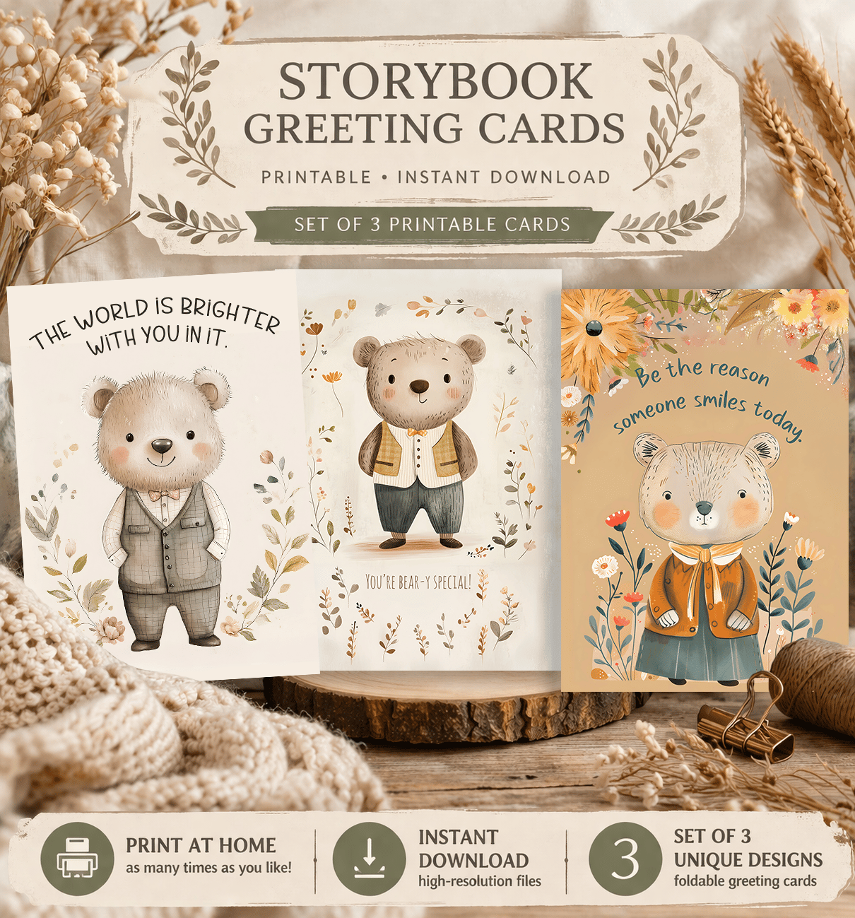 A set of printable encouragement cards you can download instantly and use today. Perfect for those moments when you want to lift someone’s spirits, these sweet storybook-style cards make it easy to send a thoughtful message right away.