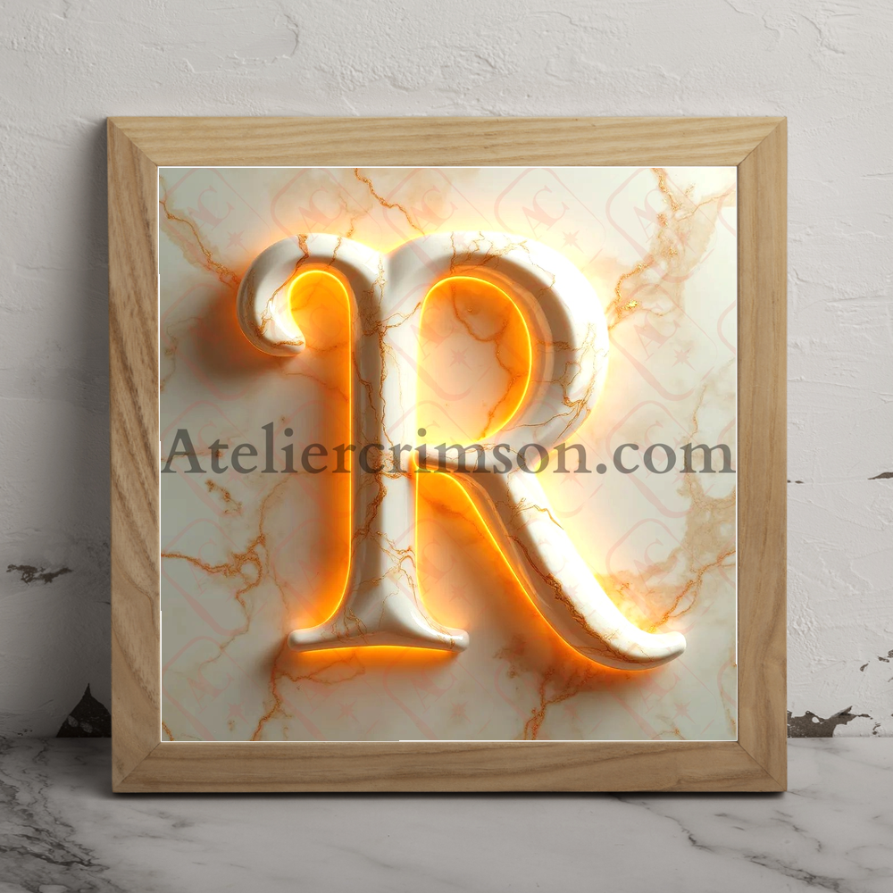 The letter R glowing creamy marble Download Now this high quality AI-generated image, perfect for adding a touch of tranquility and creativity to any space.