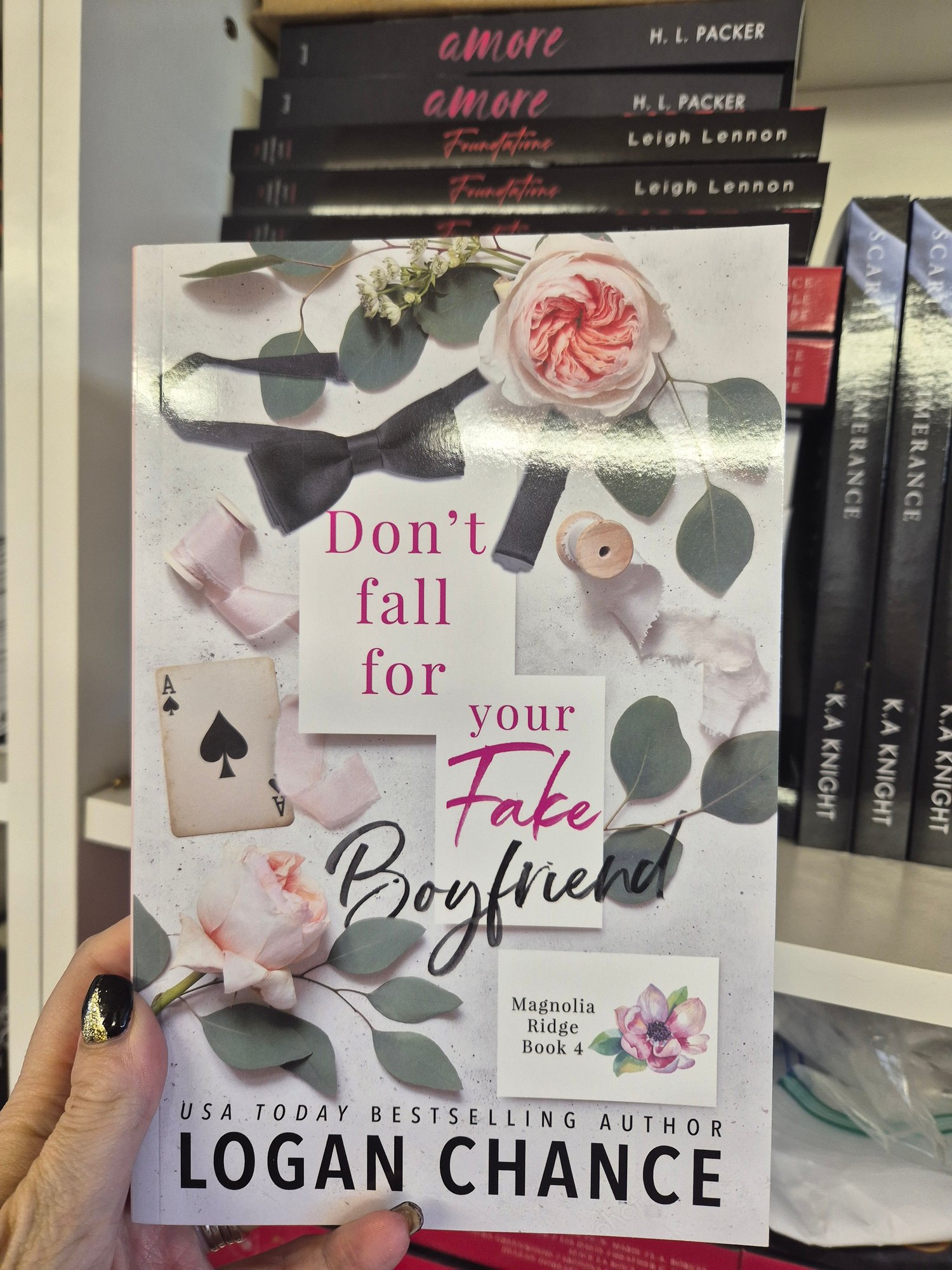 A hand signed special edition of Don't Fall For Your Fake Boyfriend by Logan Chance, a Fake Dating Romance story.
