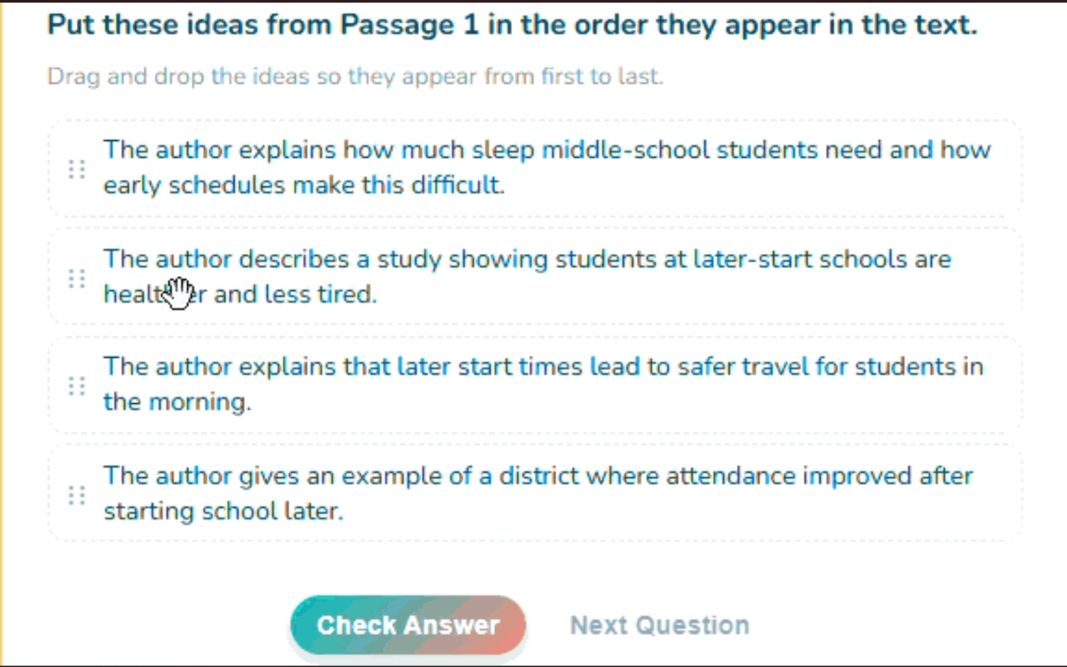 A standards-aligned 6th grade reading practice platform that mirrors common state test-style questions and gives teachers instant, actionable data. Students practice with passages, multimedia questions, and built-in tools (highlighting, cross-outs, etc.), while teachers monitor progress live and export reports.