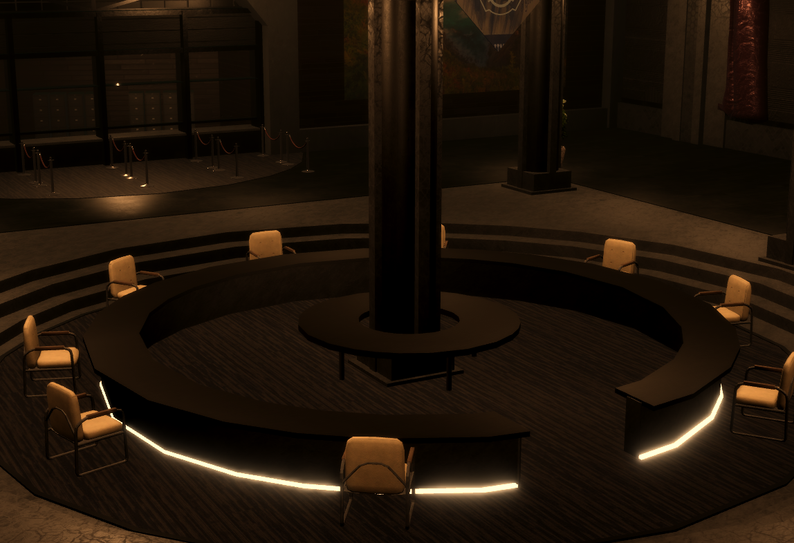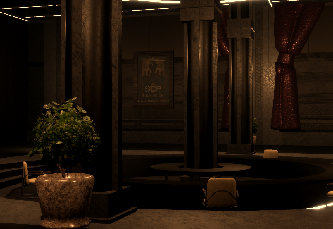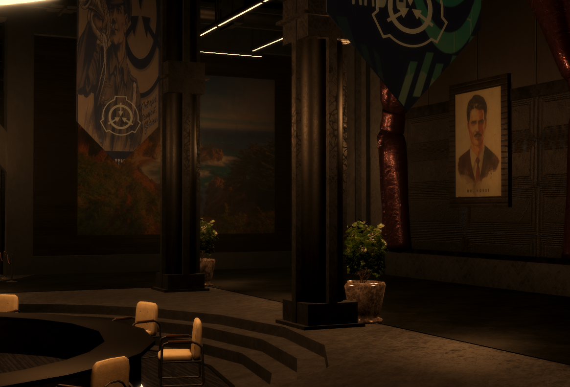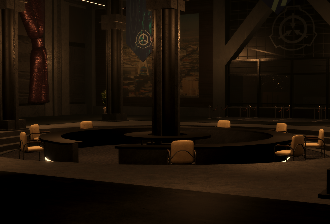 The Aegis Technologies Meeting room is perfect for SCPF meetings such as the elusive O5 council. Fully furnished and ready to go with light settings in the pictures provided and all lighting settings, level up your administrative meetings or site with this ready to go meeting room. It includes a few props from our prop pack and goes perfectly with it if you are looking to expand off the style or purchase one of our other SCPF Products of this collection. May seat 8 users at a time with room for expansion.