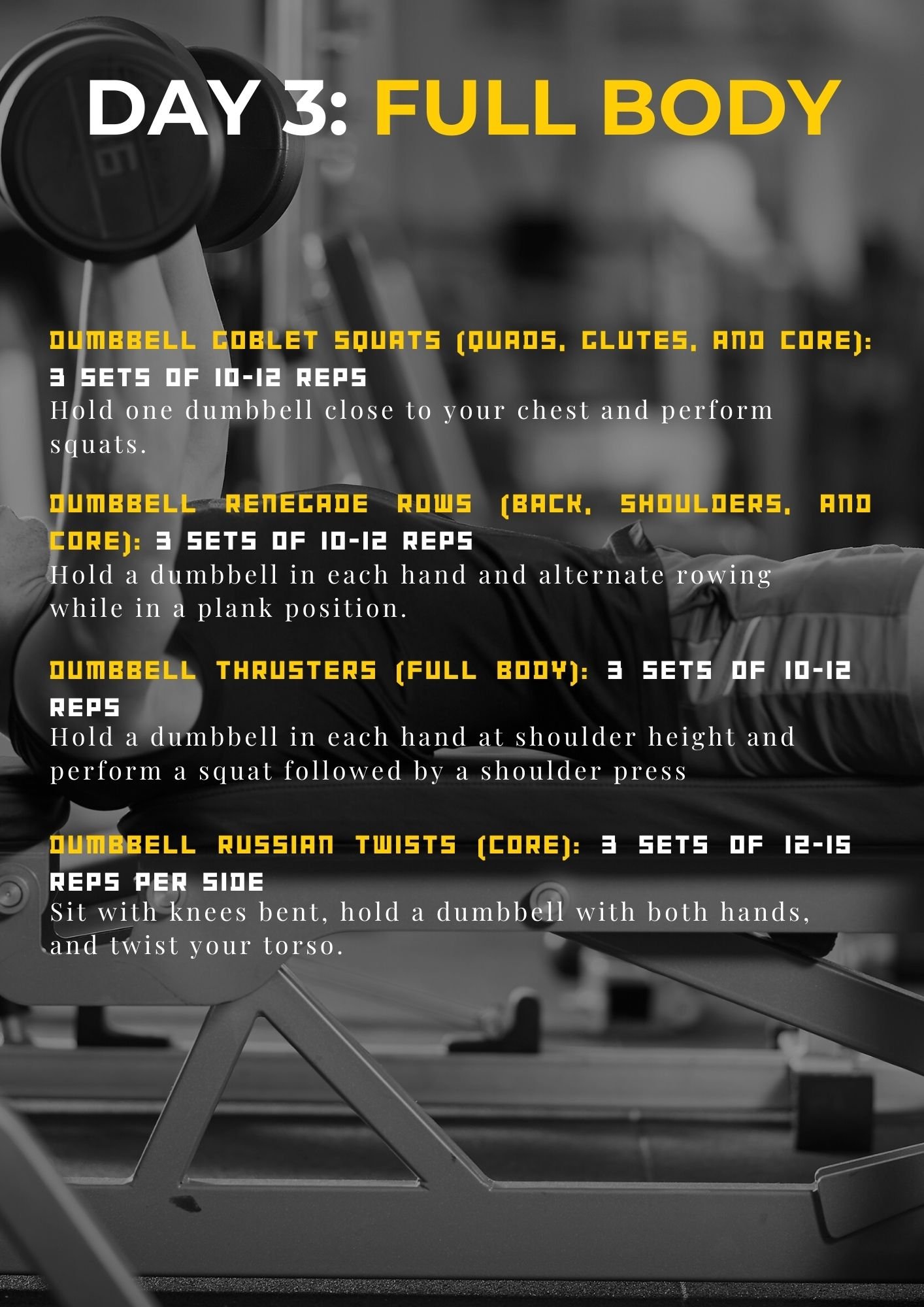 Prepare to transform your physique with our Full-Body Dumbbell Sculpting Workout, a comprehensive fitness routine designed to enhance strength, tone muscles, and boost overall fitness. This workout plan is perfect for both beginners and seasoned fitness enthusiasts looking to build a well-rounded, balanced physique.
