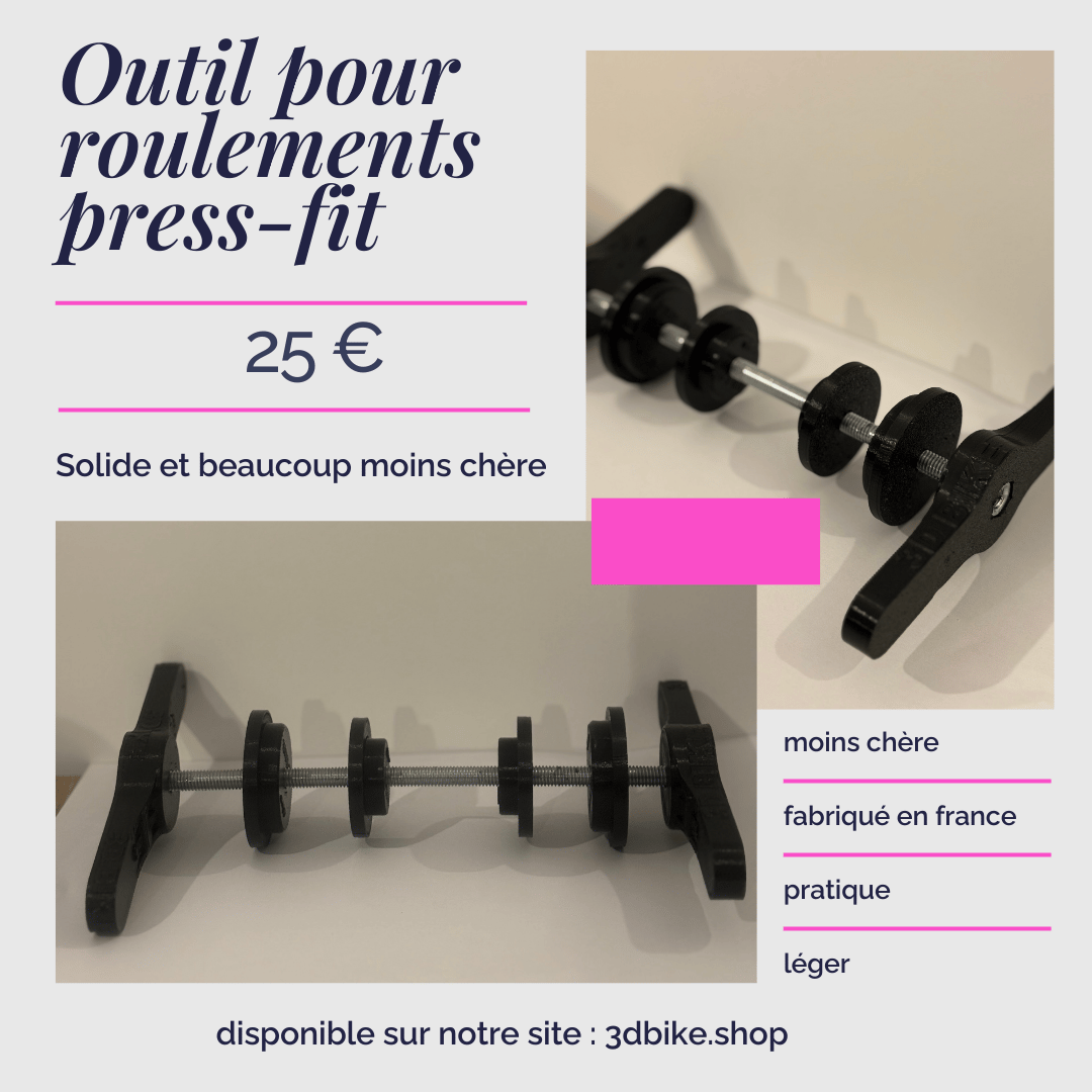 L’outil pour roulements press-fit est conçu pour installer ou retirer facilement les roulements press-fit utilisés sur de nombreux cadres de vélo modernes. Fabriqué en France, il offre une solution solide, légère et économique pour entretenir son vélo sans matériel coûteux.