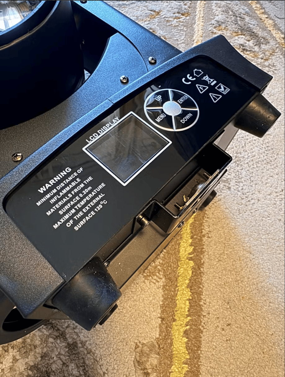 * Verifique, desde el display del equipo, que el menu "Fixture / Dmx Mode" muestre los modos "STD:18CH" y "HSI:12CH".