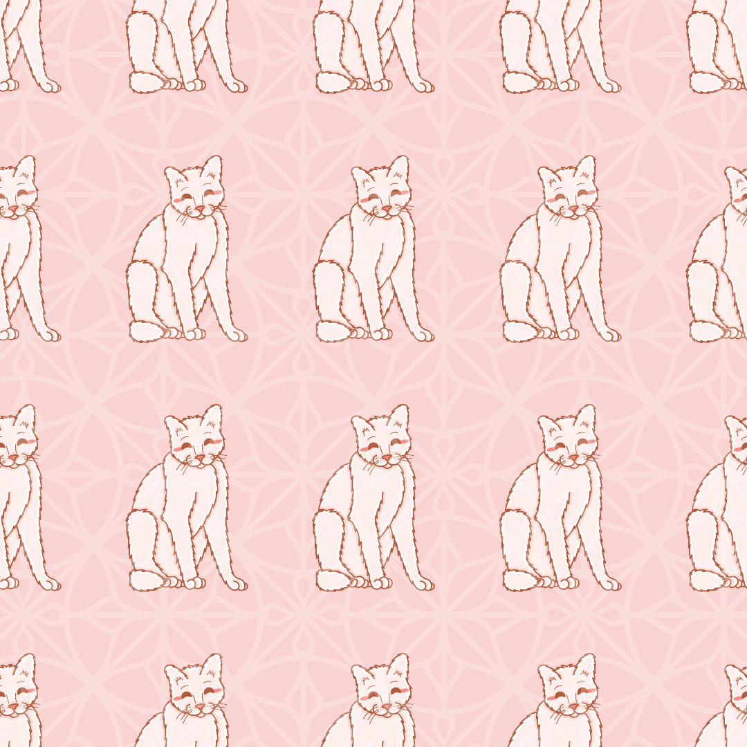 Kawaii cat pattern illustration. Cute seated kitten seamless vector background.