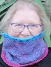 A cosy cowl, knit in two colours of DK weight yarn, using up yarn from stash. Instructions are given for one size but the pattern is easily adaptable to suit your requirements or the amount of yarn you have available.