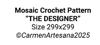 Overlay Mosaic Crochet Wall Hanging, THE DESIGNER, written pattern row by row, Big Chart with Xs, PDF files