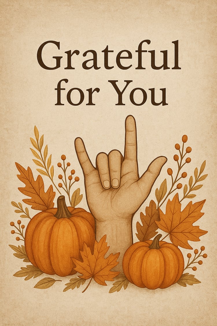 Celebrate the season of gratitude with this beautiful ASL “Grateful for You” Fall Printable Bundle.