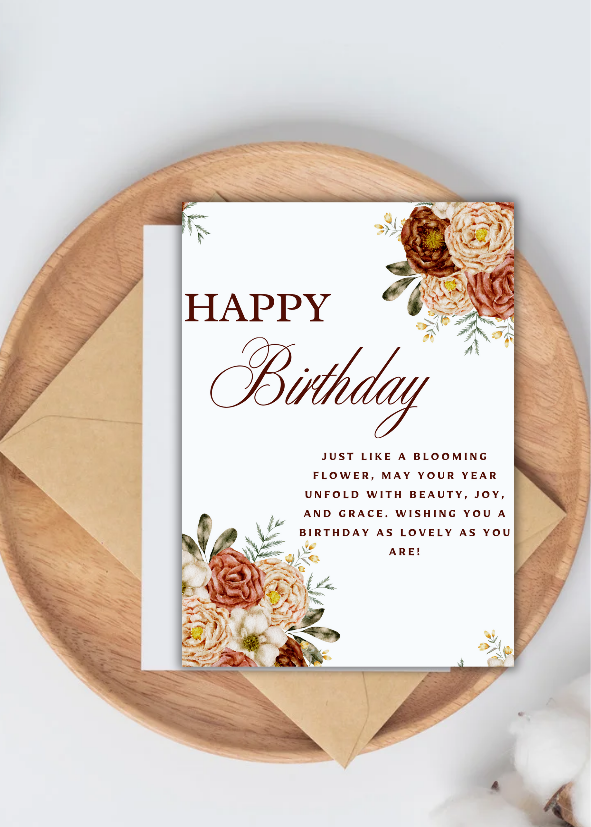Celebrate a special day with this beautifully designed brown floral birthday card. Featuring warm, earthy tones and delicate blooms, this printable card is perfect for nature lovers and those who appreciate understated elegance. Instantly download, print, and share a heartfelt message wrapped in grace and charm.
