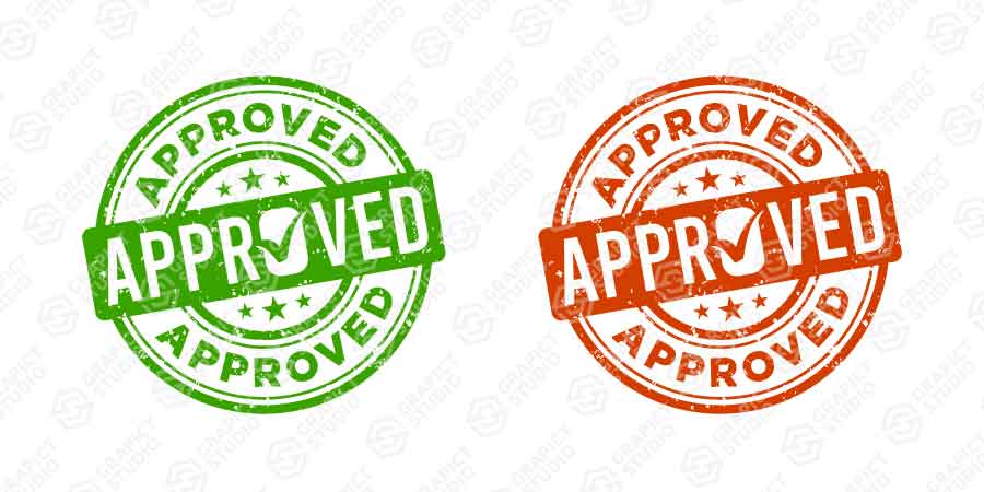 Approved stamp, design element suitable for websites, print design or app. Glyph style. Vector clipart image, graphic design element.
