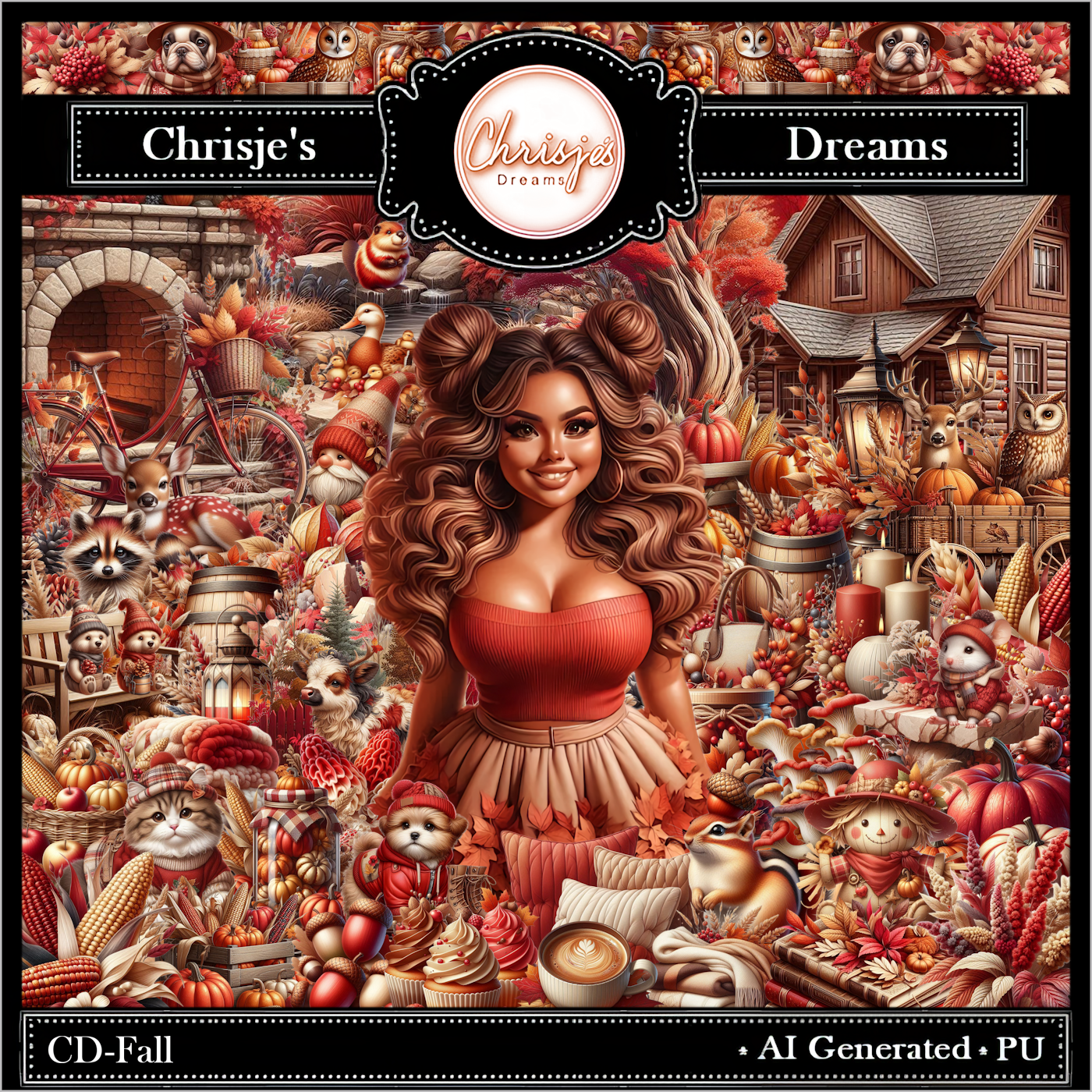 Fall is a 🍂🍁Autumn/Fall🍁🍂 themed kit which contains 196 elements, 10 frames, 17 papers and 4 beautiful AI generated png tubes by Chrisje's Dreams.