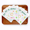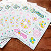 A 4" x 6 " sticker sheet of quilty designs based on the patterns of Megan Collins Quilt Design. The sticker sheet includes 7+ die cut stickers. The stickers are outdoor durable and have a matte lamination that gives them a soft non-glare finish.