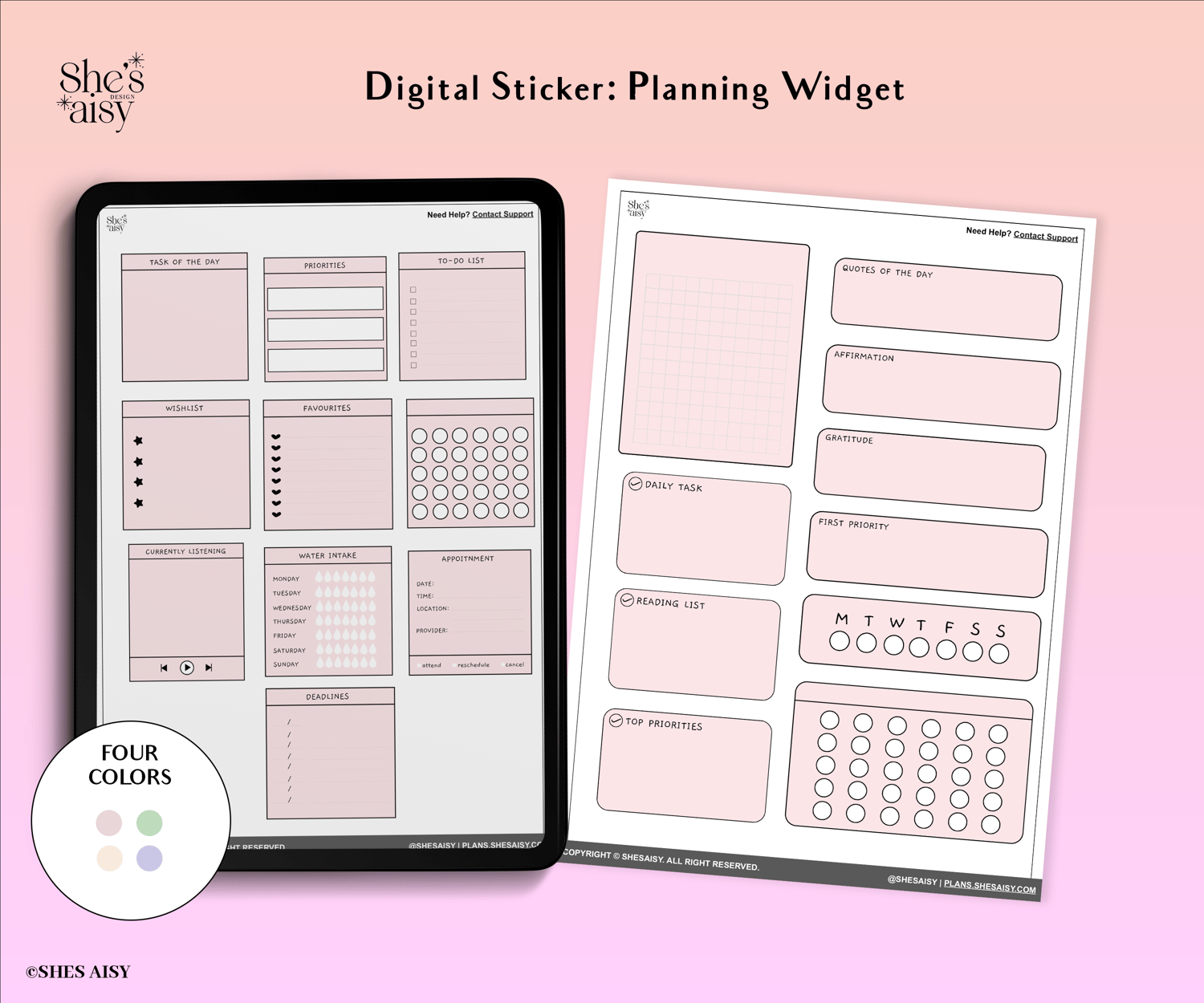 Planning Widgets Digital Sticker is designed for flair and function. Add these Digital Sticker: Planning Widgets to your daily or weekly spreads, or wherever you need them inside your digital planners or journals!