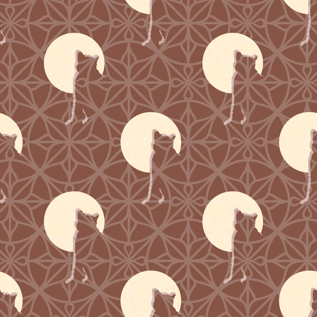 Cat looking at the moon vector background pattern. Kitten silhouette seamless illustration.
